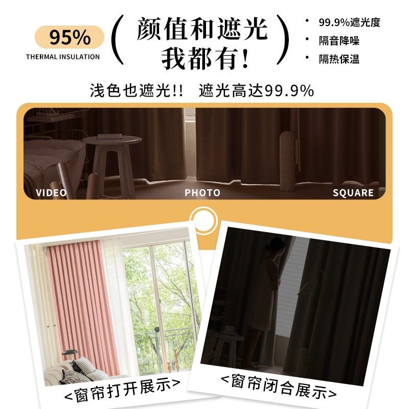 粉色窗帘全遮光女孩房间2024新款卧室儿童房挂钩式飘窗客厅隔热帘