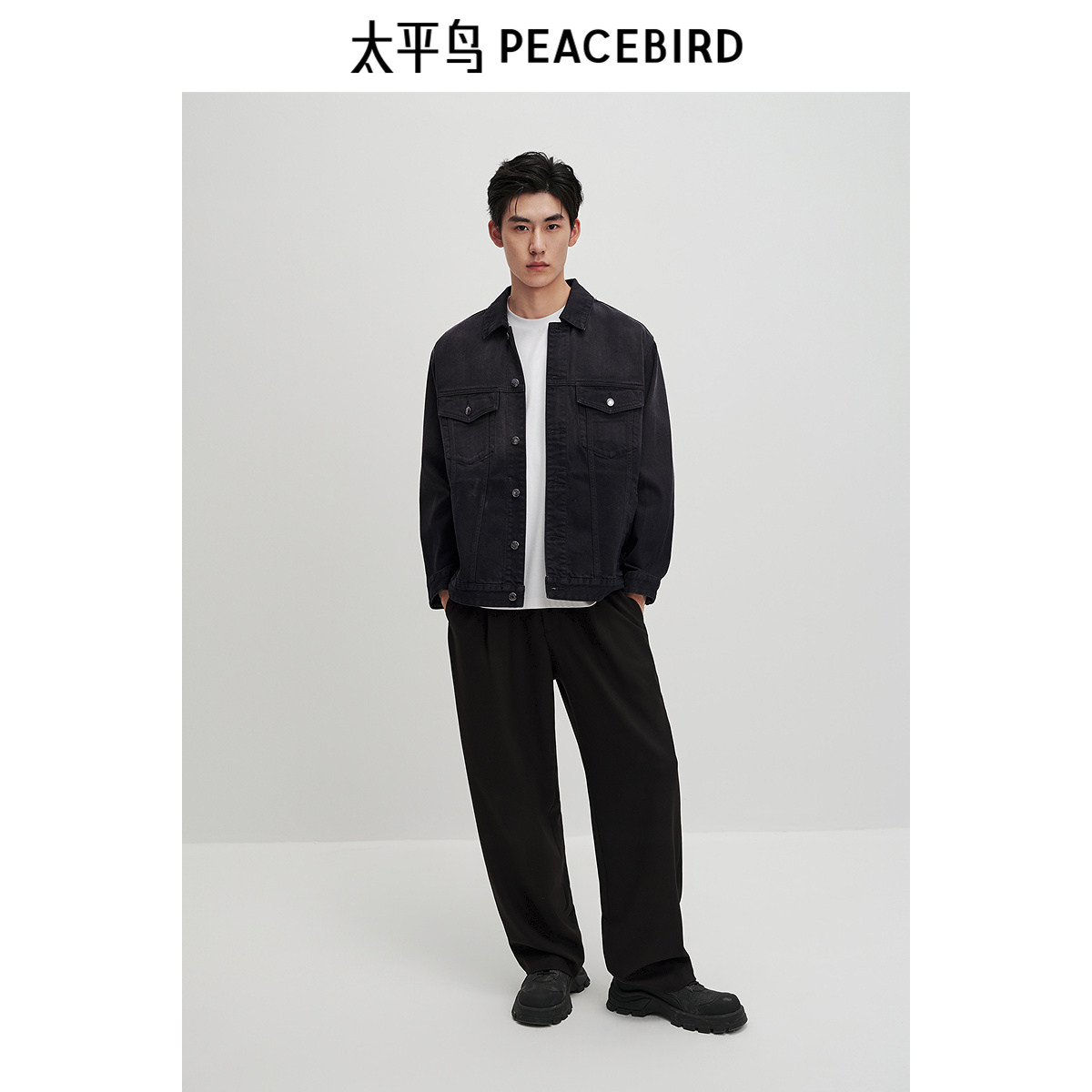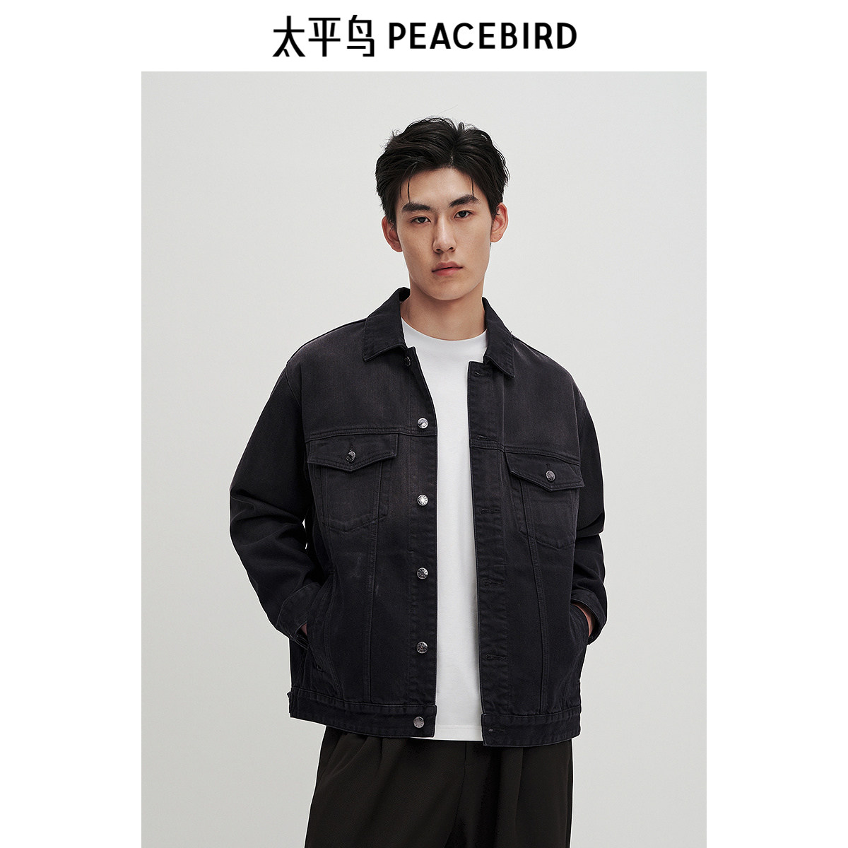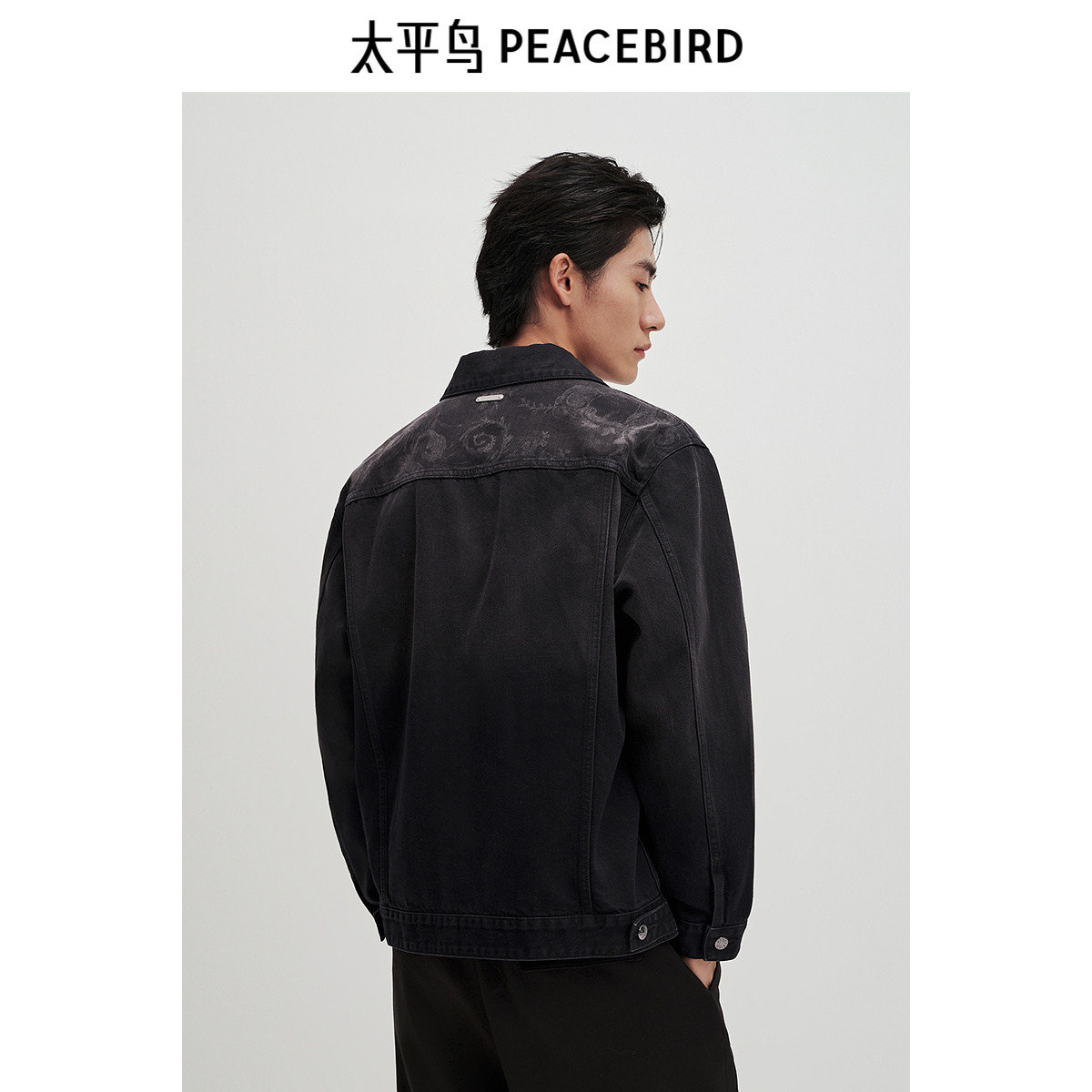 太平鸟男装暗纹印花牛仔夹克25秋新款时尚潮流宽松茄克休闲外套