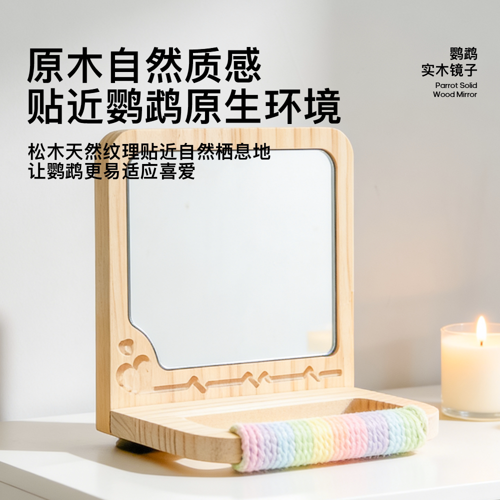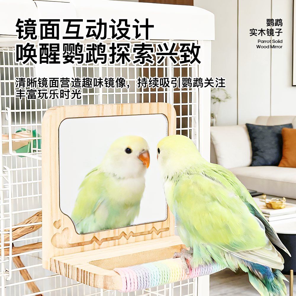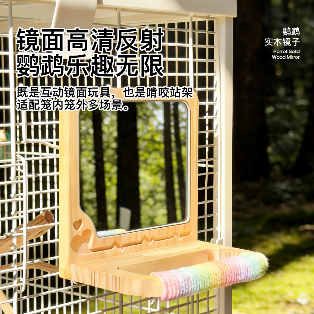 青松宠鹦鹉镜子彩虹棉绳松木镜