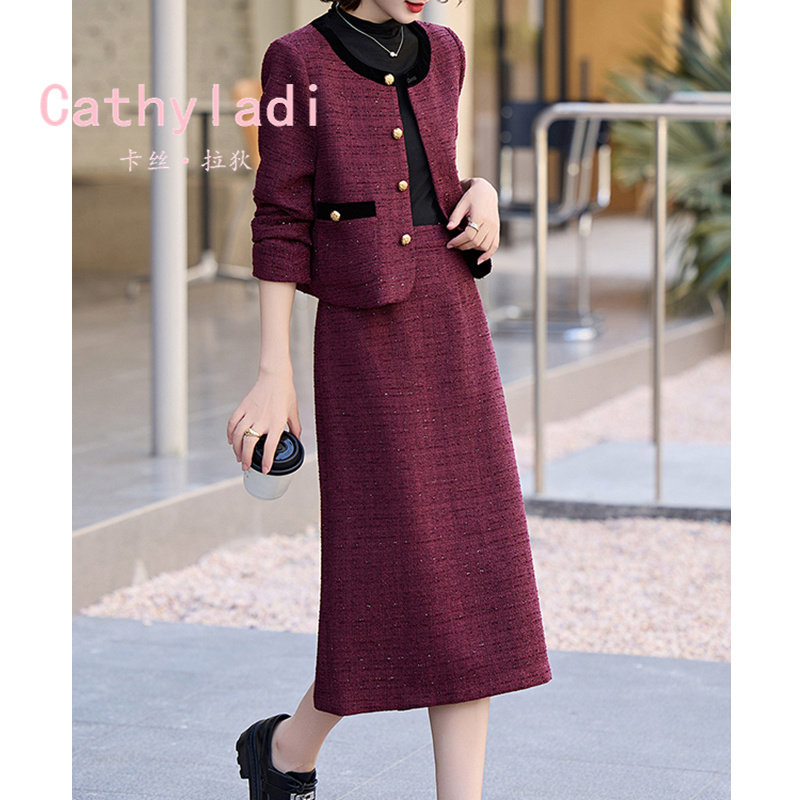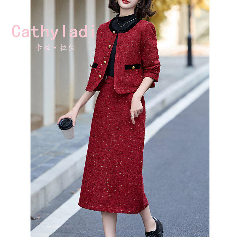 CATHYLADI名媛小香风外套半身裙两件套2025年冬季轻奢气质套装女