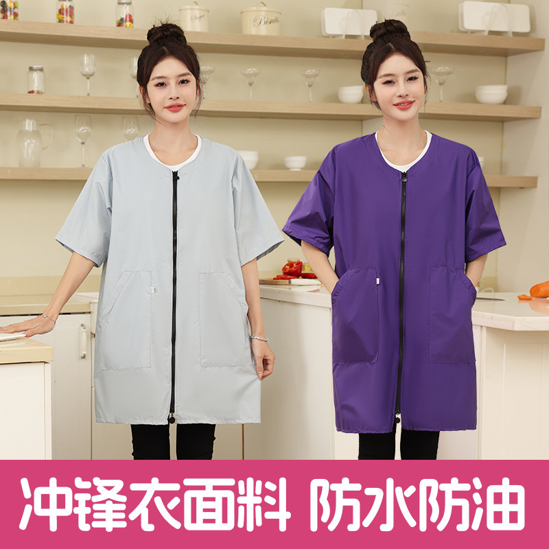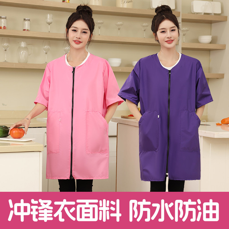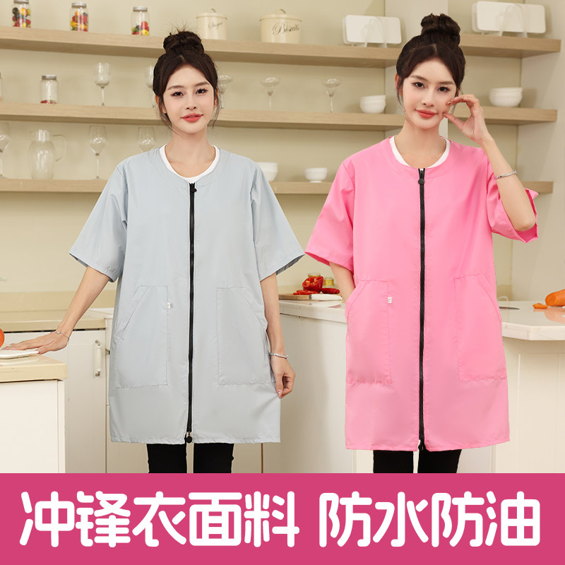 短袖圆领时尚女罩衣大人新款围裙厨房做饭家用外套干活工作服春夏
