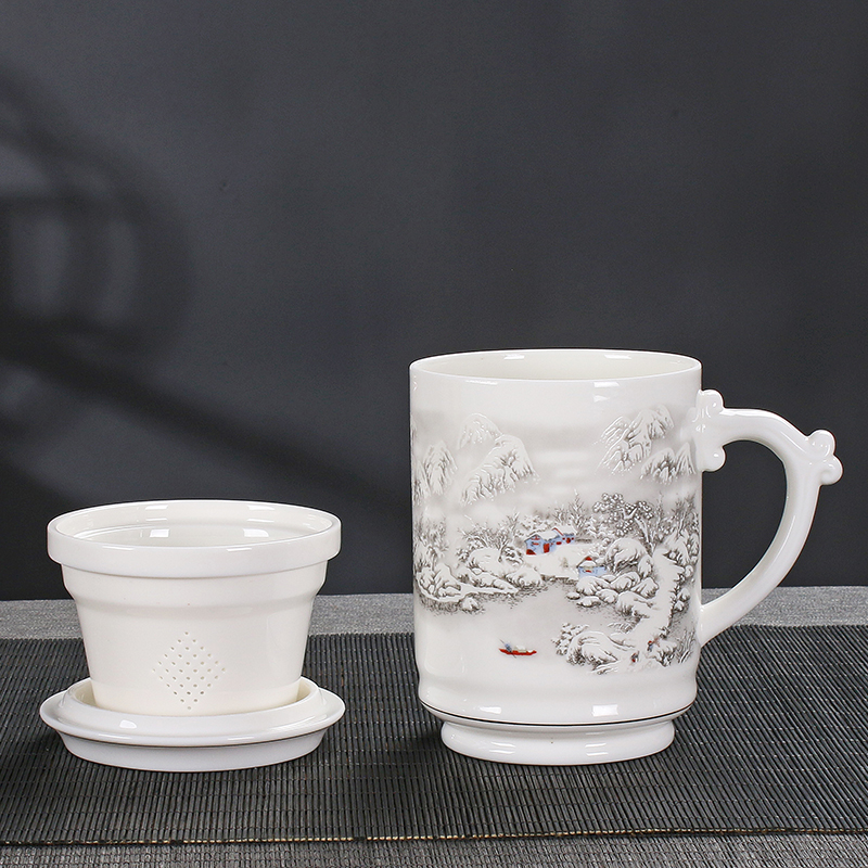 原源大号过滤茶i杯陶瓷带盖内胆三件泡茶杯大容量茶水分离男女士