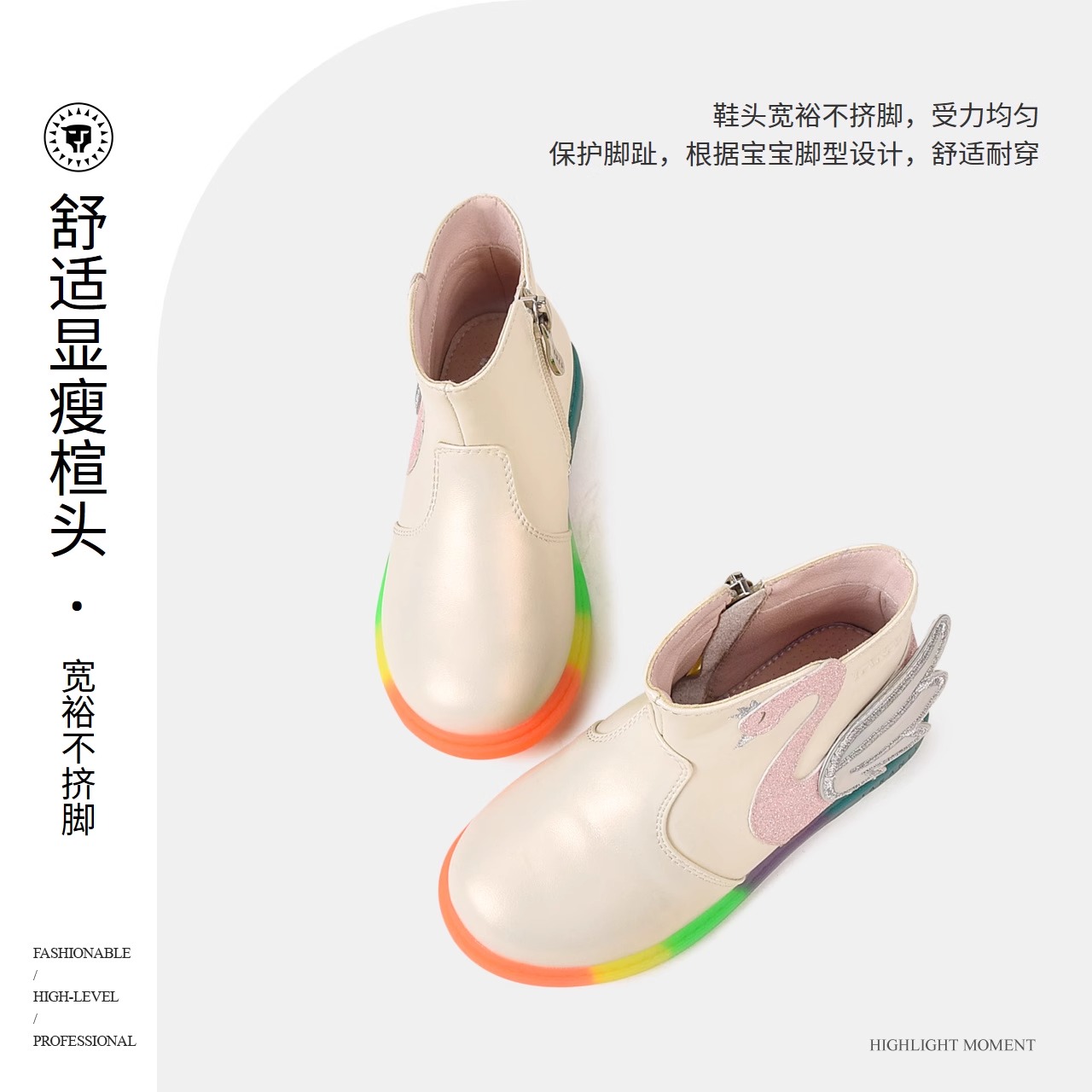 泰兰尼斯meta秋季新款女童防滑软底马丁靴儿童皮短靴小女孩公主鞋