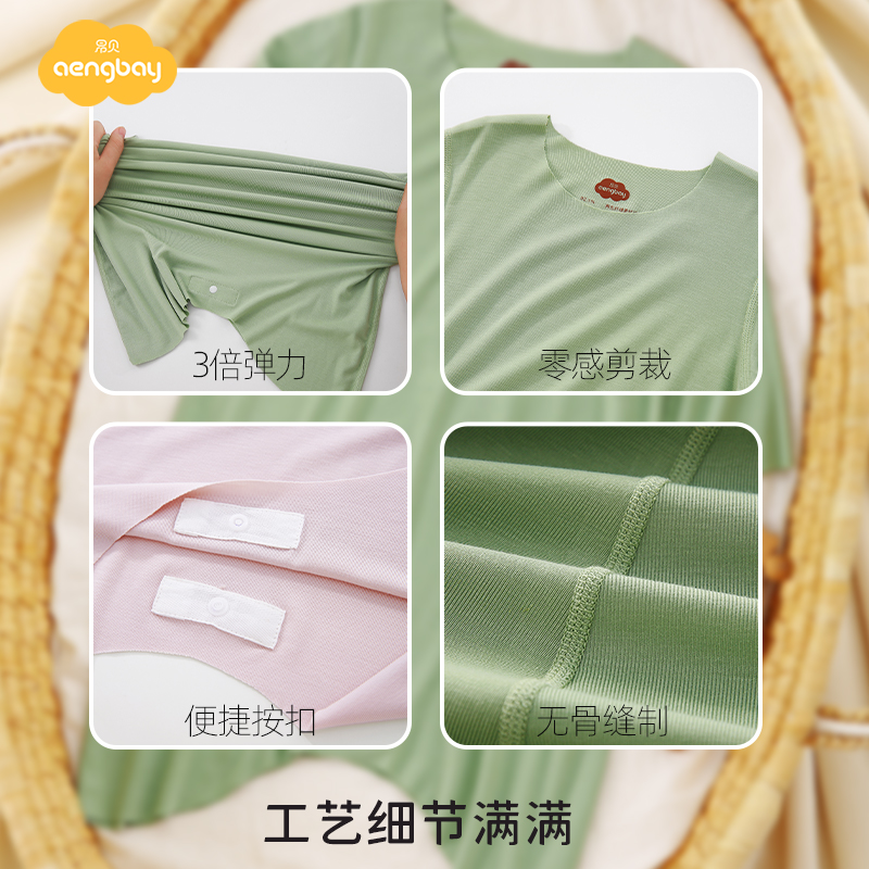 [天竹®]Aengbay婴儿睡衣秋季薄空调服宝宝防踢睡袍新生儿连体衣
