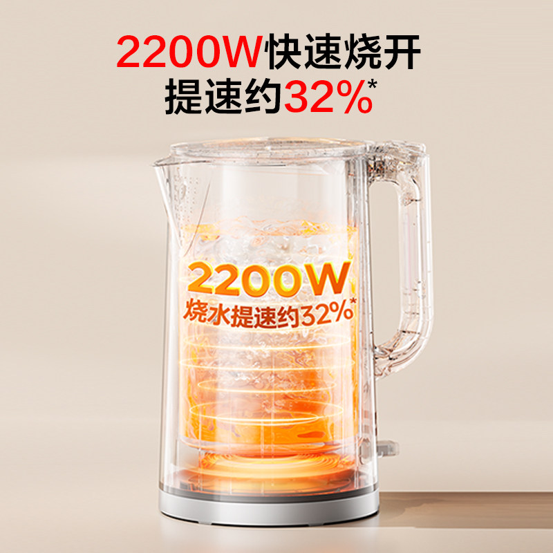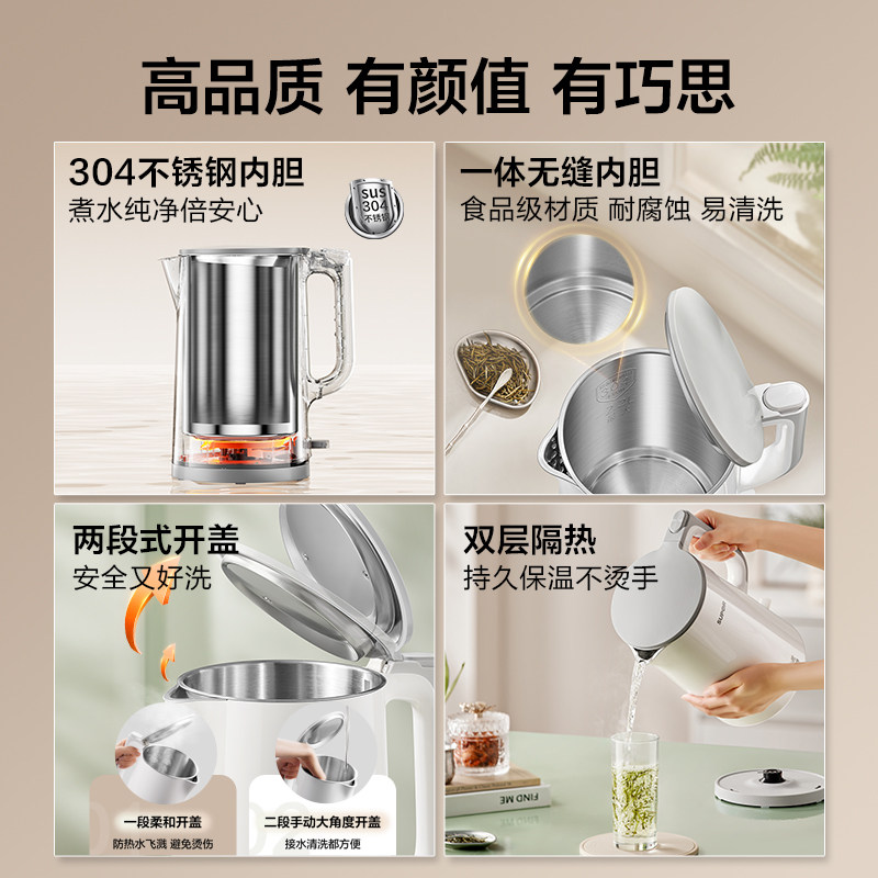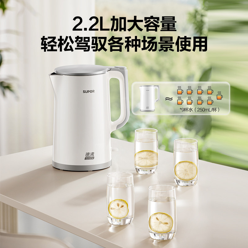 苏泊尔不锈钢电热水壶家用2.2L大容量自动智能保温开水壶烧水壶