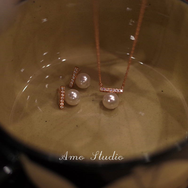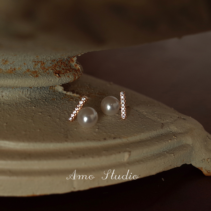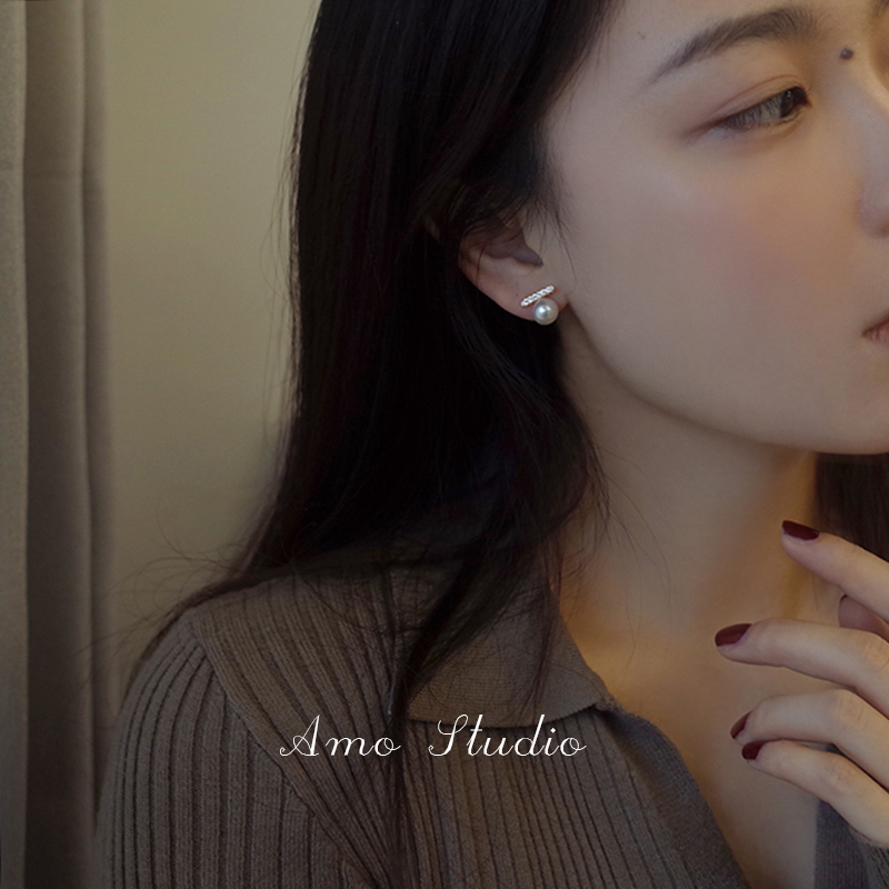 AMO经典满钻平衡木珍珠耳环女轻奢小众气质高级感耳钉2025年新款