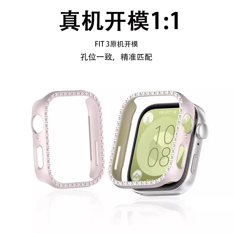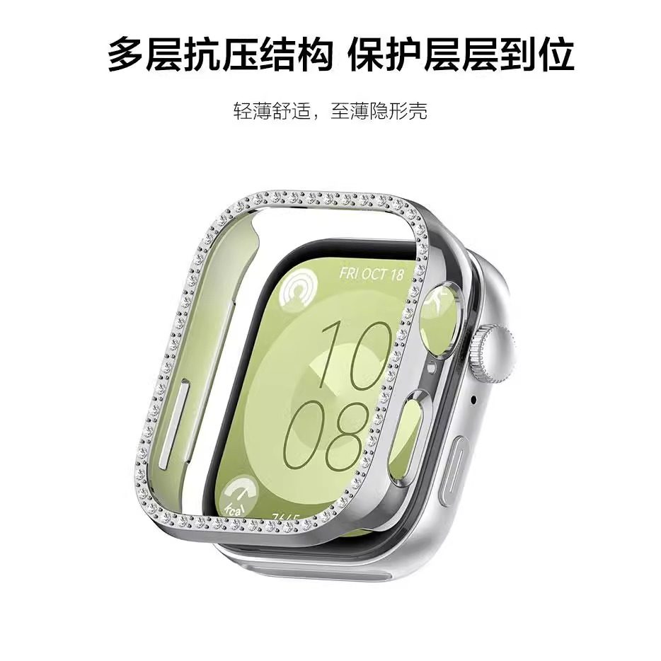 适用华为fit4镶钻保护壳watchfit3手表壳新款半包缕空fit4智能运动手表fit3仿钻边框壳pc女款抗摔表盘保护套