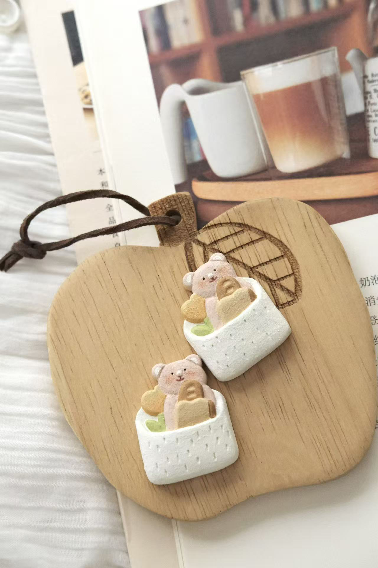 砰砰卷|陶土冰箱贴 咖啡面包 郁金香小熊 日系原创设计手工制作
