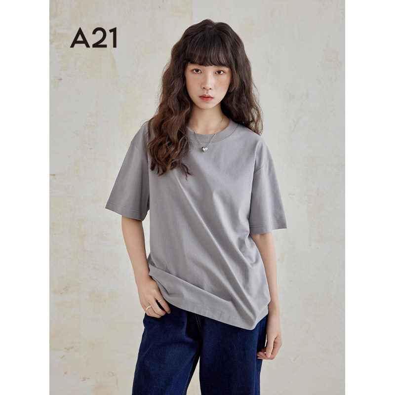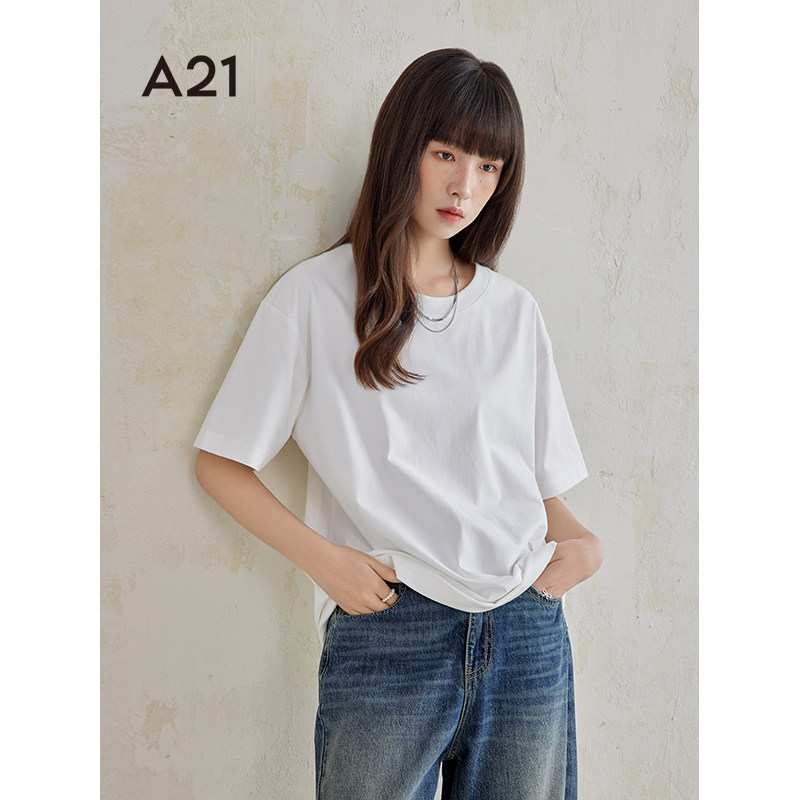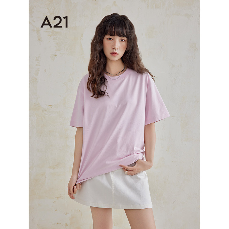 A21女装落肩短袖T恤夏季纯色简约百搭情侣装打底衫