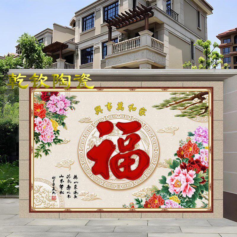 农村大福字瓷砖迎门墙庭院户外背景墙院J内影壁墙照壁图案福满祥
