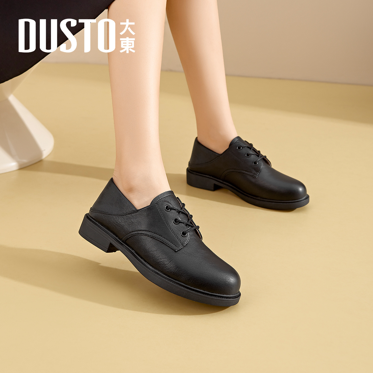 大东英伦风系带通勤小皮鞋女2025新款秋冬厚底乐福鞋百搭深口单鞋
