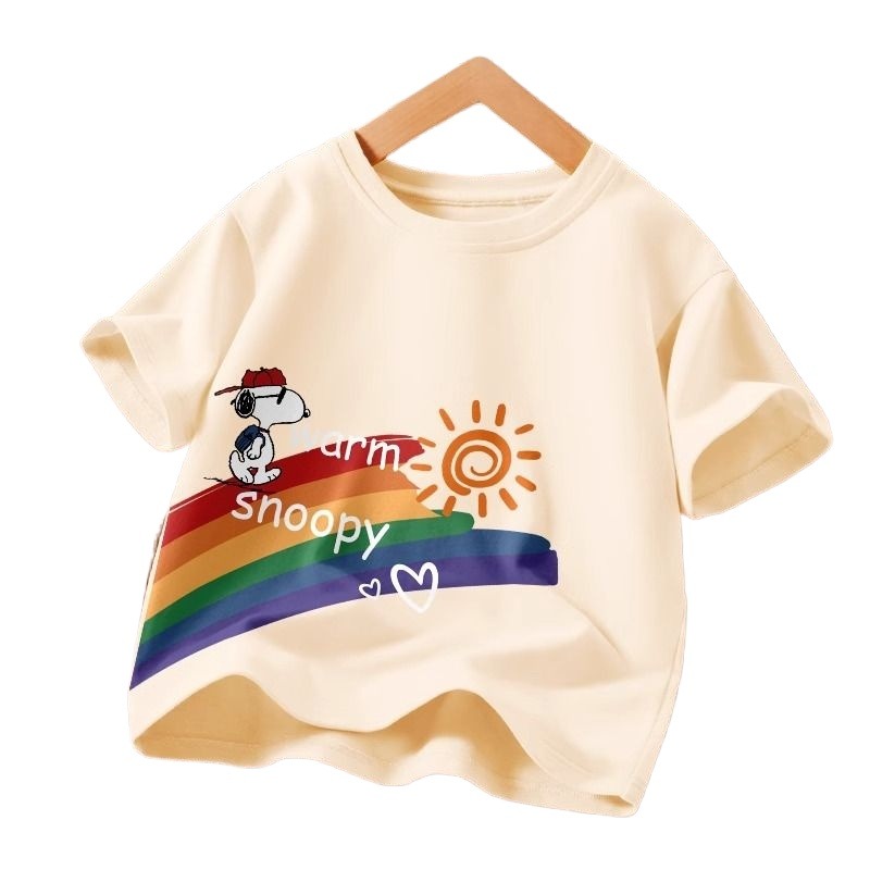 史努比男童夏季纯棉短袖t恤2025新款儿童洋气打底衫夏装上衣3件套