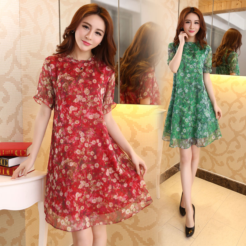 显瘦雪纺海边度假沙滩裙宽松大码女装连衣裙夏季胖mm中长款裙子潮