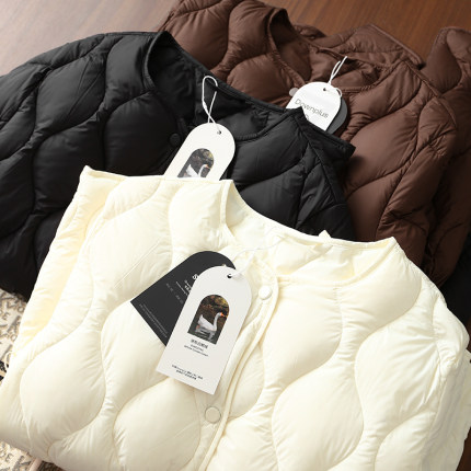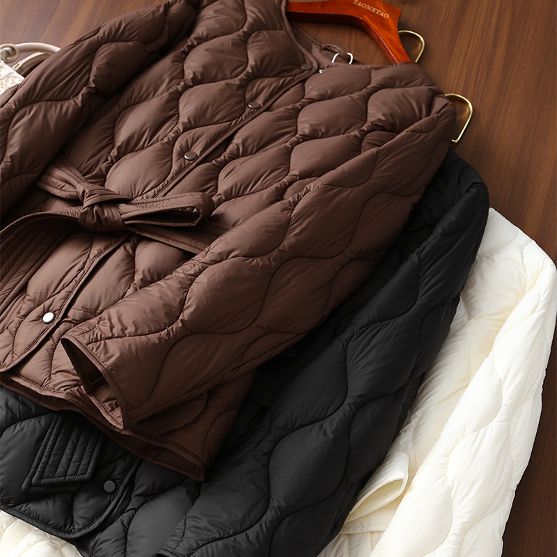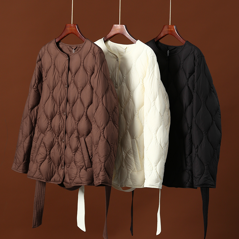 淘么淘 极简风 轻薄葫芦系带收腰圆领长袖中长款95鹅绒羽绒服女冬