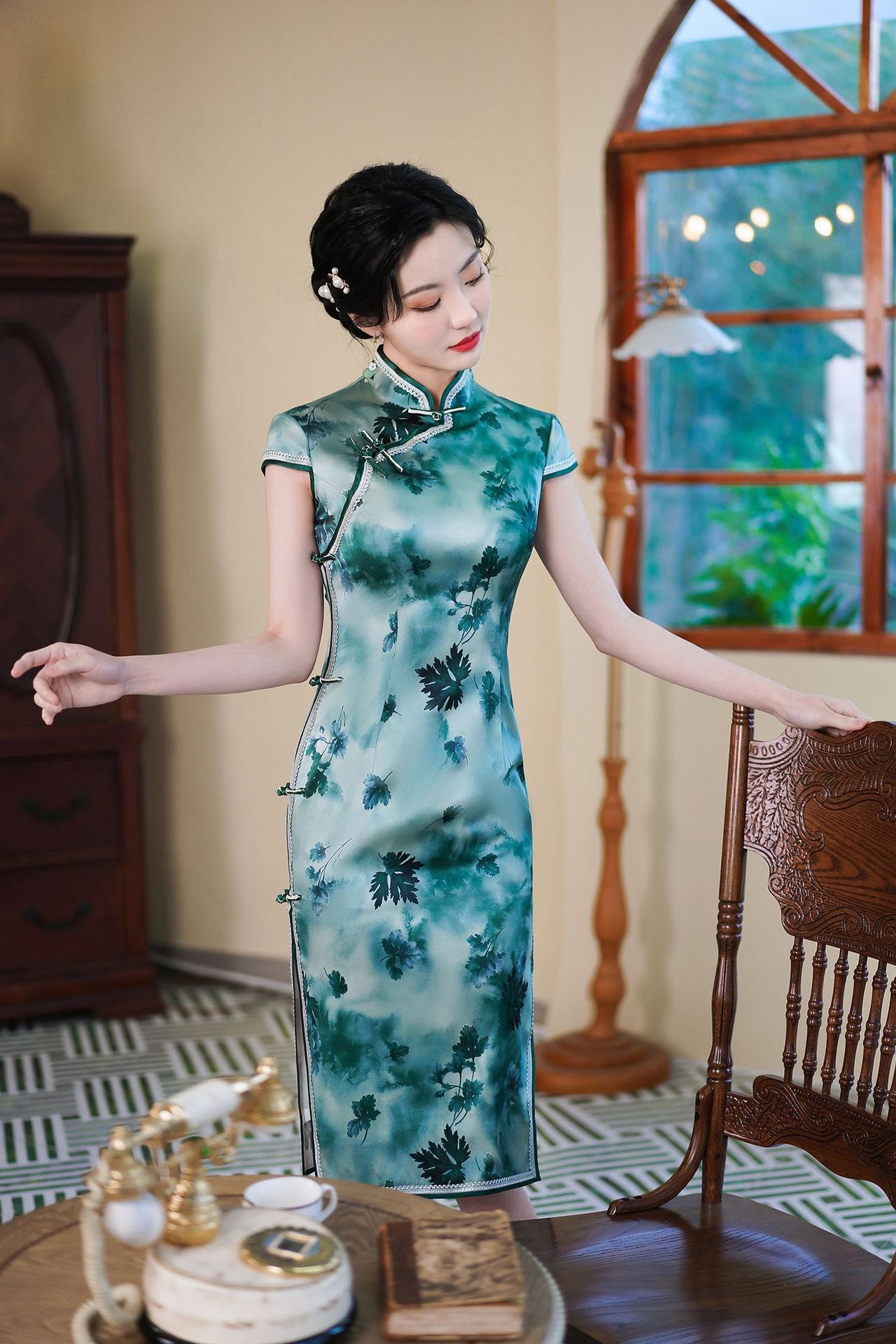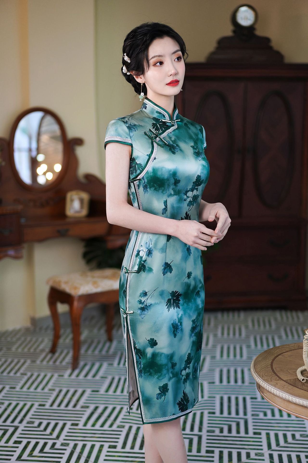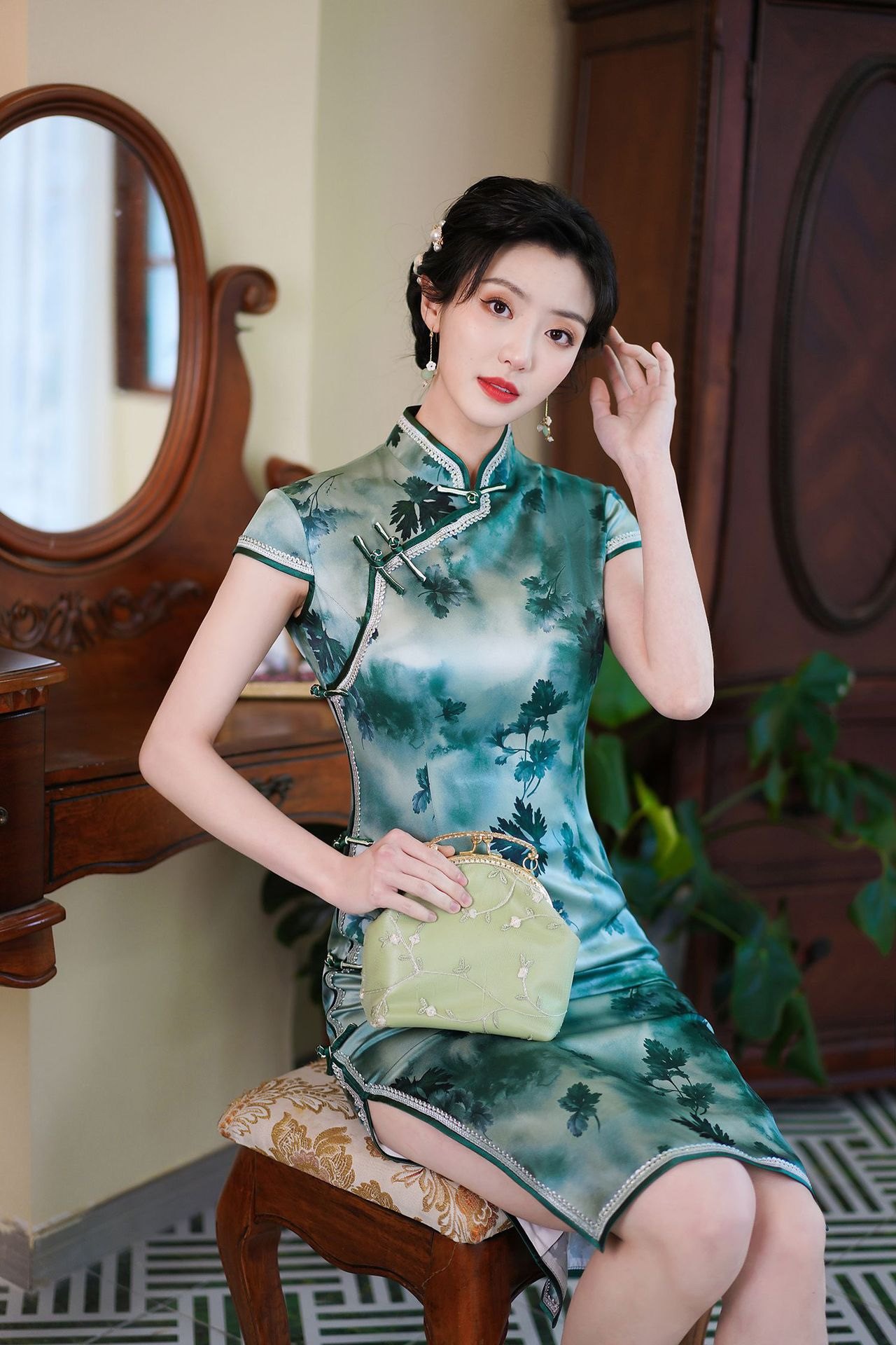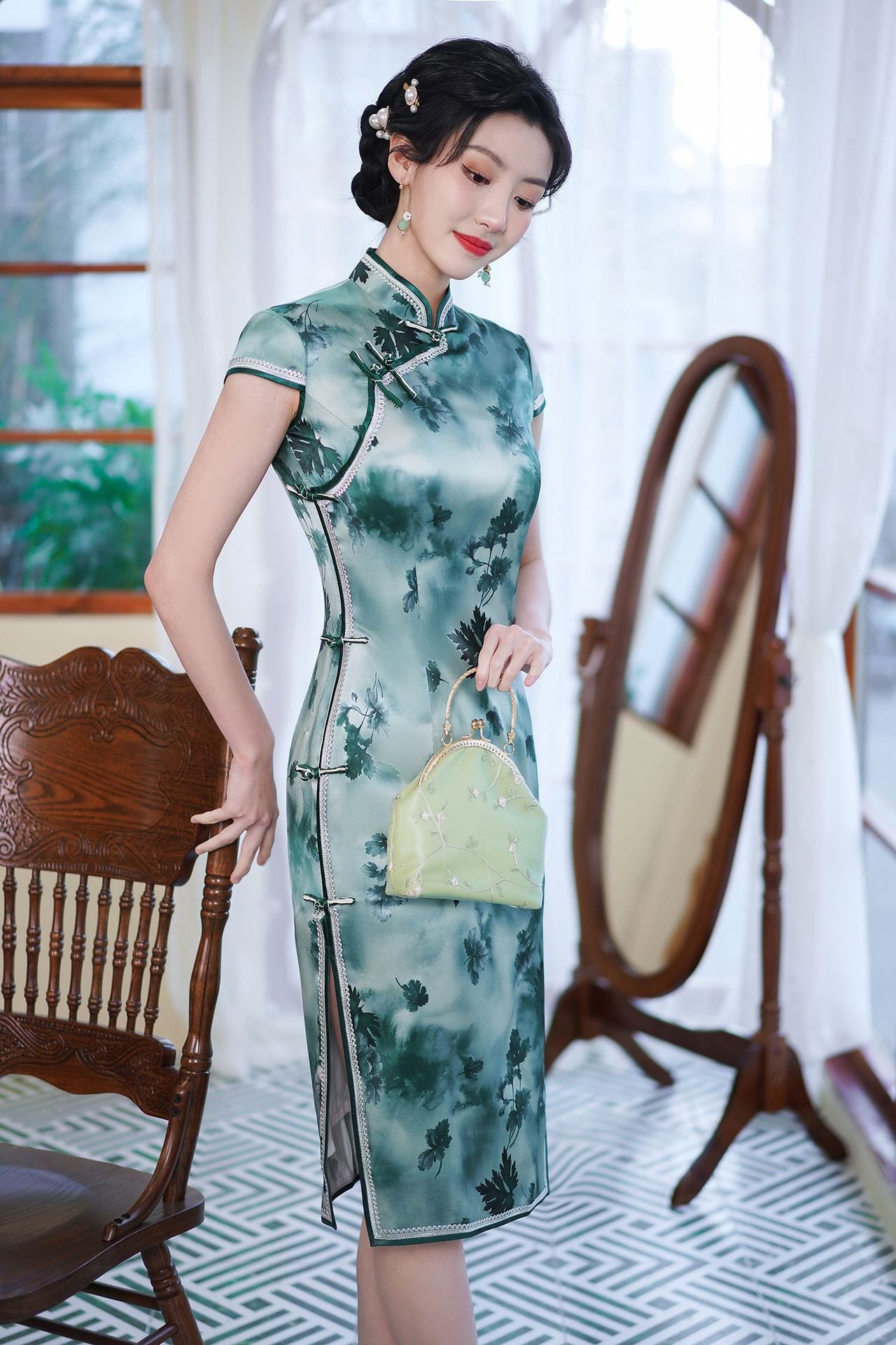 送考旗袍2023新款中国风女装真丝中长款礼服日常改良连衣裙复古