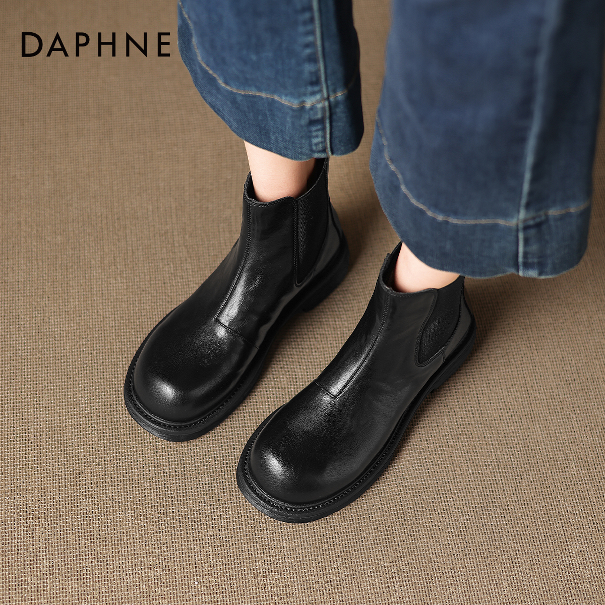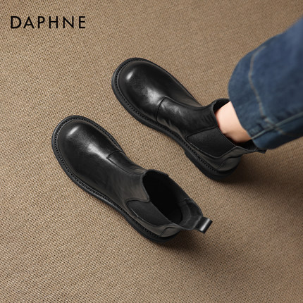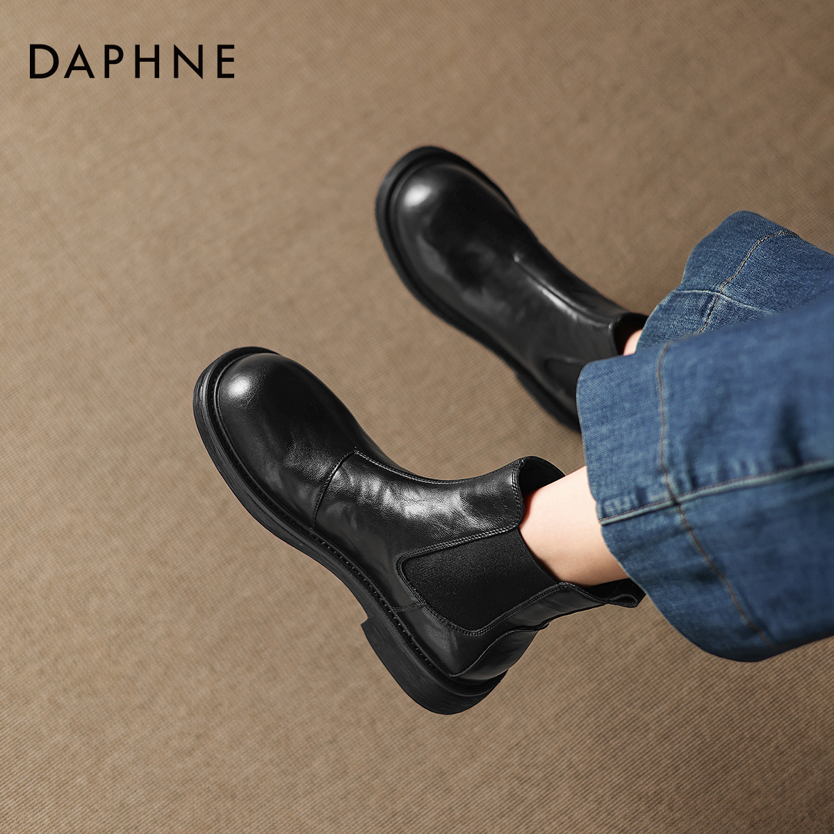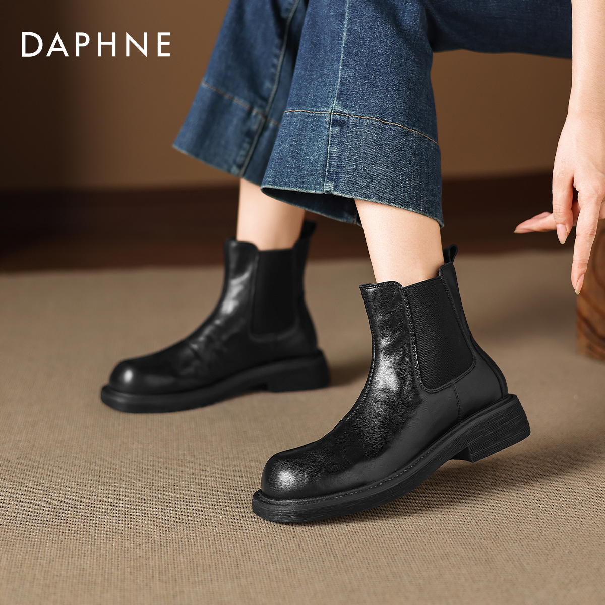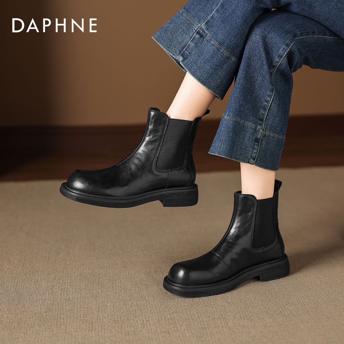 达芙妮黑色短靴子女冬季2025新款平底马丁靴瘦瘦靴低跟切尔西女靴
