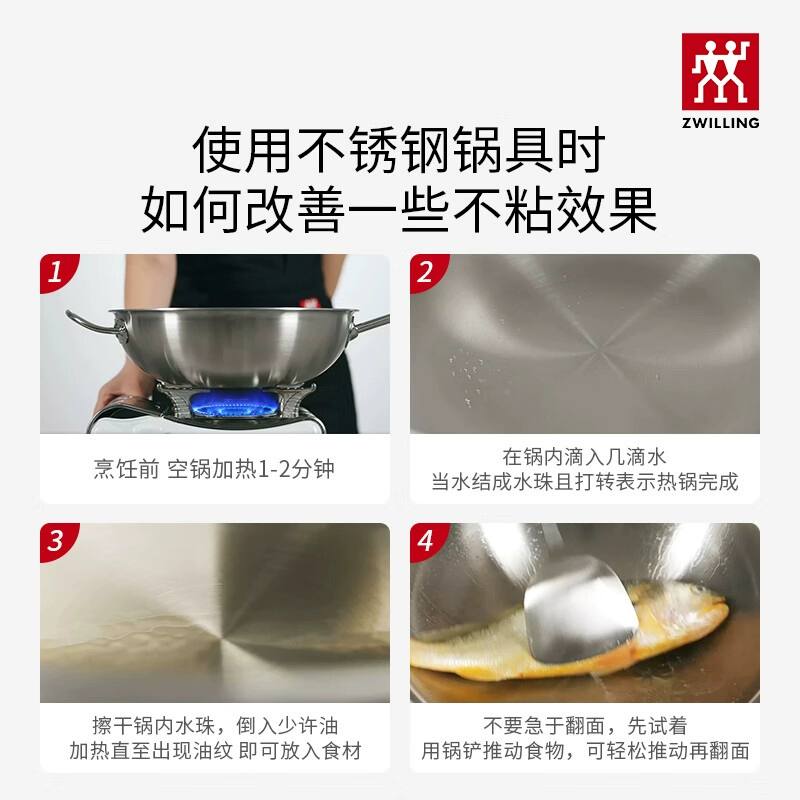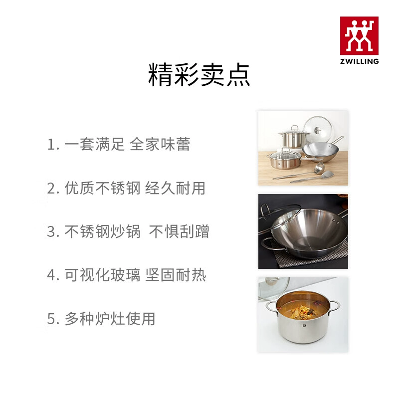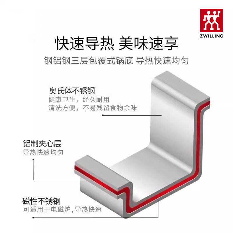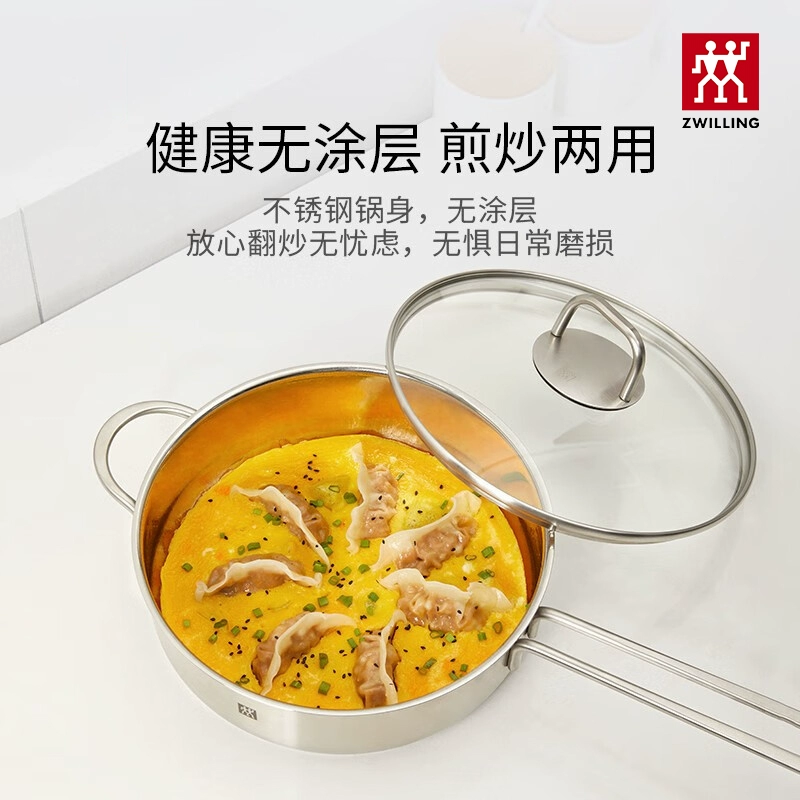 德国双立人炒锅煎锅奶锅汤锅无涂层0涂层炒菜锅家用厨房不锈钢锅