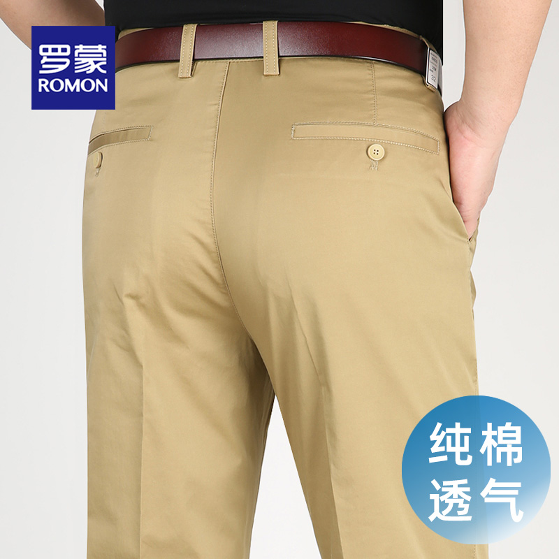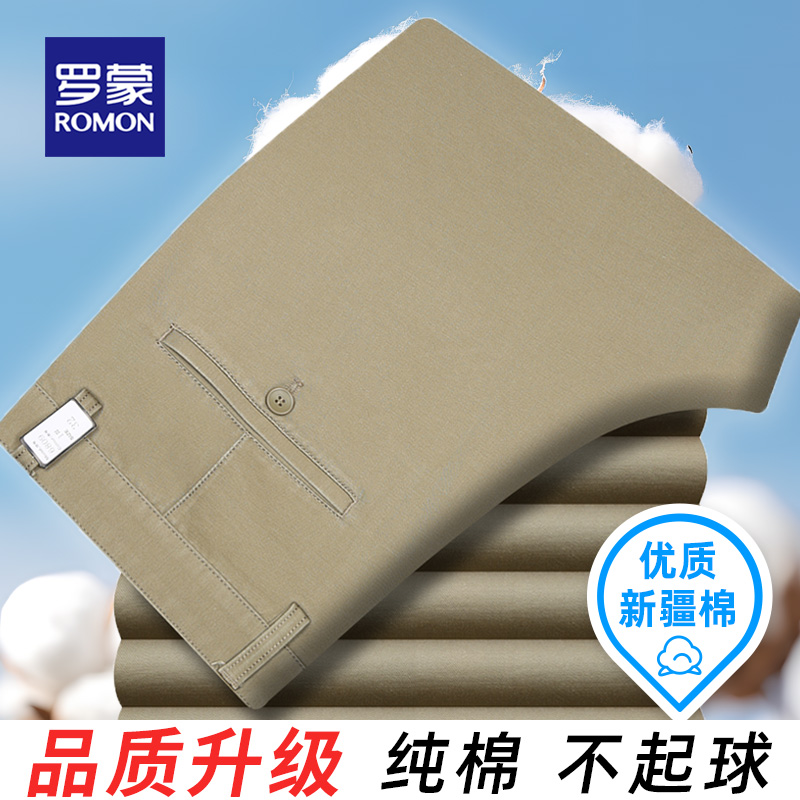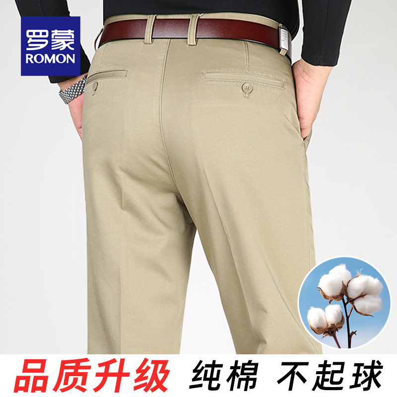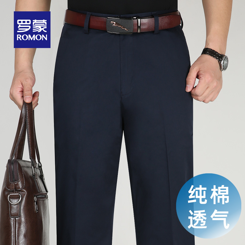 罗蒙纯棉中老年长裤秋季男士休闲裤宽松直筒高腰深裆爸爸装男裤子
