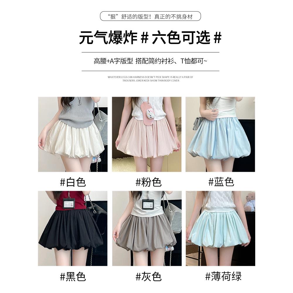 粉色花苞短裙女夏季高腰显瘦a字防走光南瓜裤小个子半身裙百褶裙