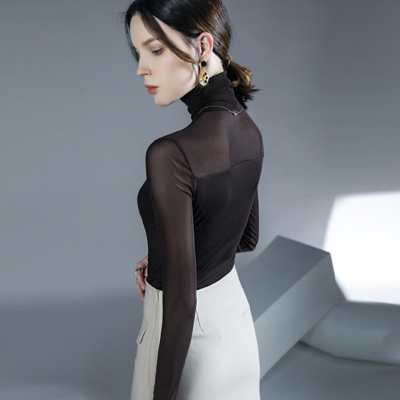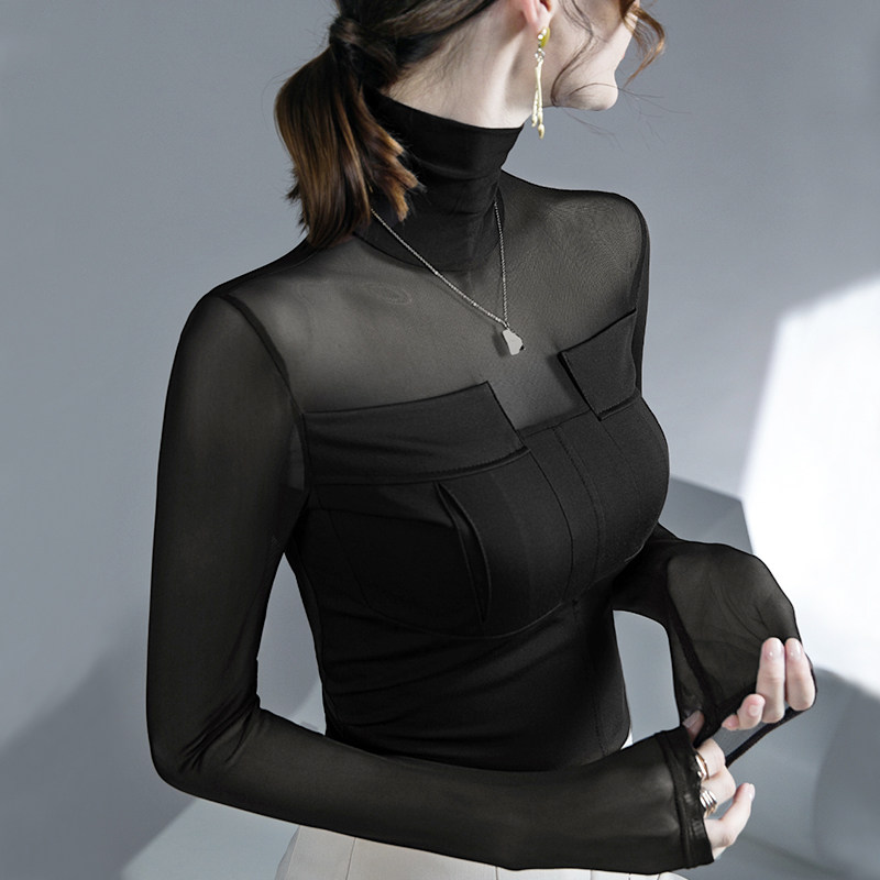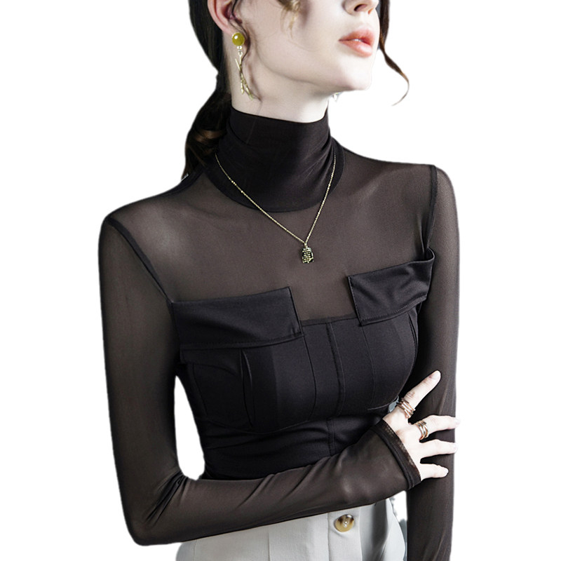 性感网纱高领打底衫女秋冬内搭2025新款长袖黑色高级感打底衣上衣