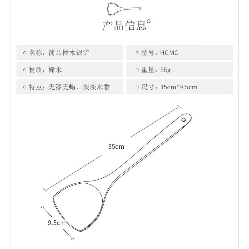 炊大皇木铲榉木炒菜锅铲子无漆无蜡原木色 榉木锅铲 榉木锅铲HGMC