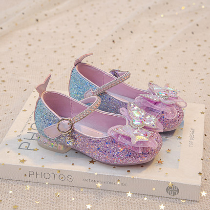 女童公主鞋2026新款儿童皮鞋演出小女孩水晶鞋宝宝软底爱莎高跟鞋