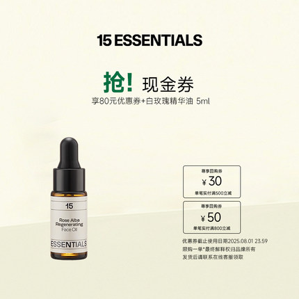 「会员专享尝鲜试用」15元素白玫瑰精华油5ml+80元优惠券紧致提亮