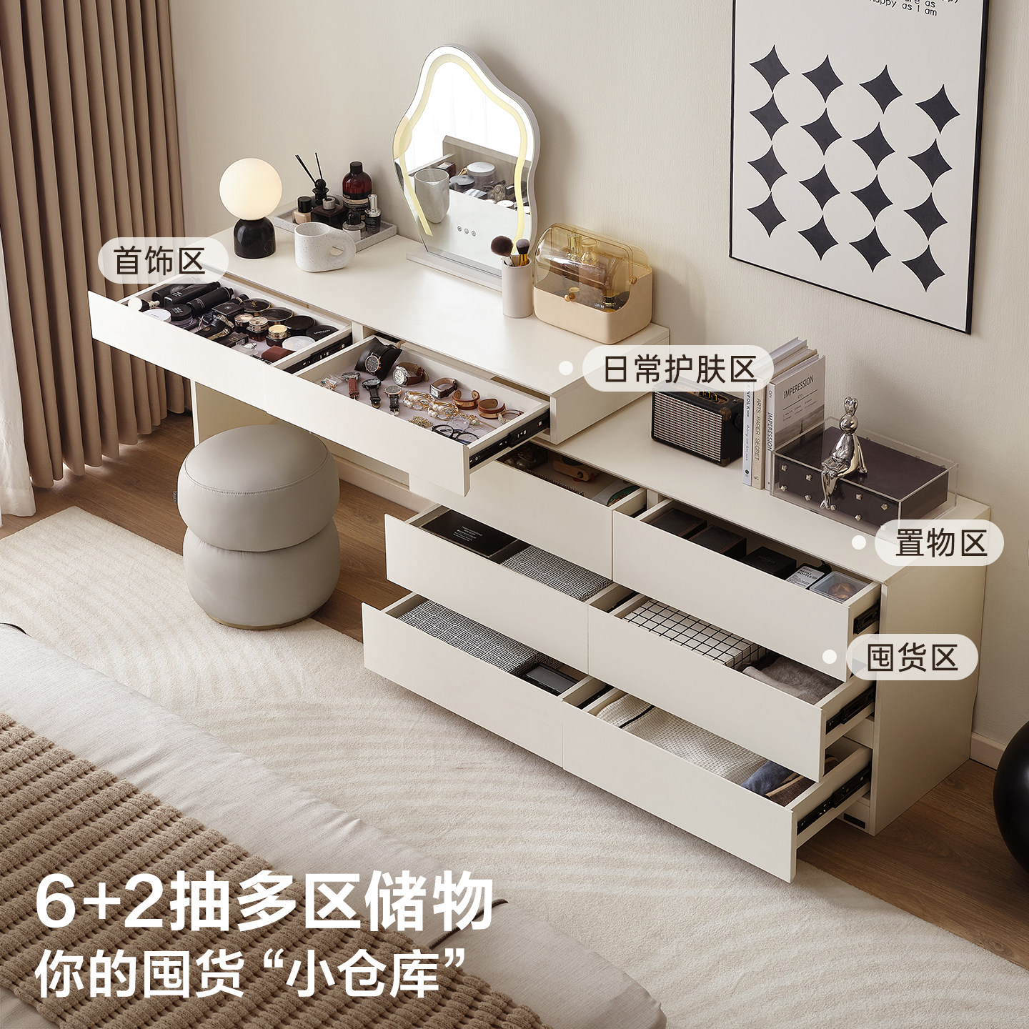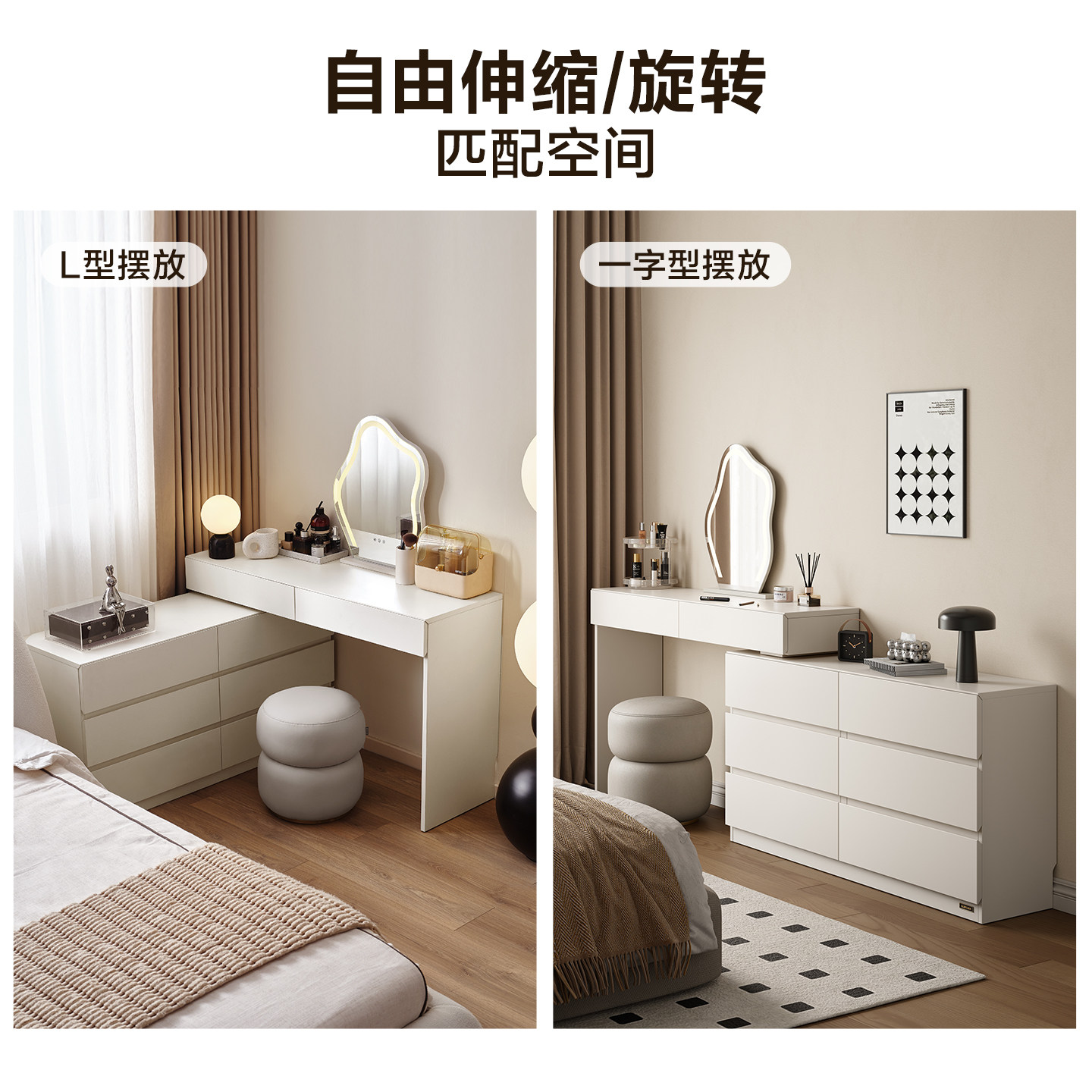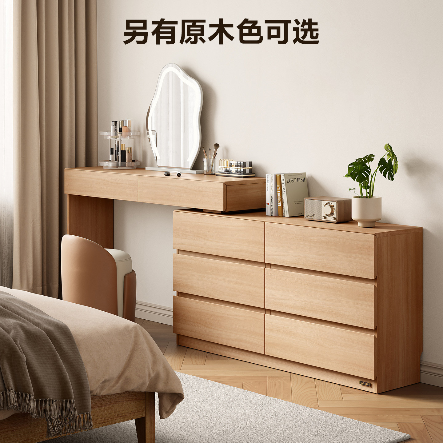 全友家居现代简约收纳斗柜一体梳妆台小户型卧室可伸缩化妆桌子