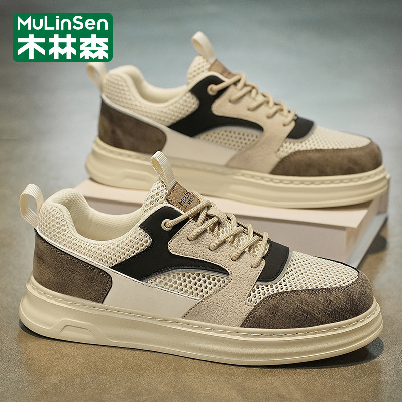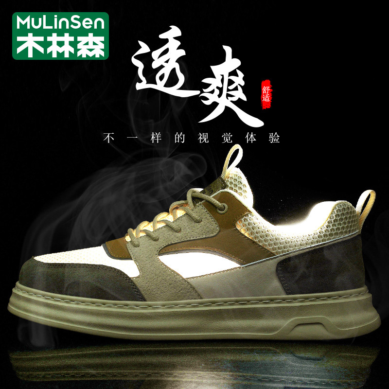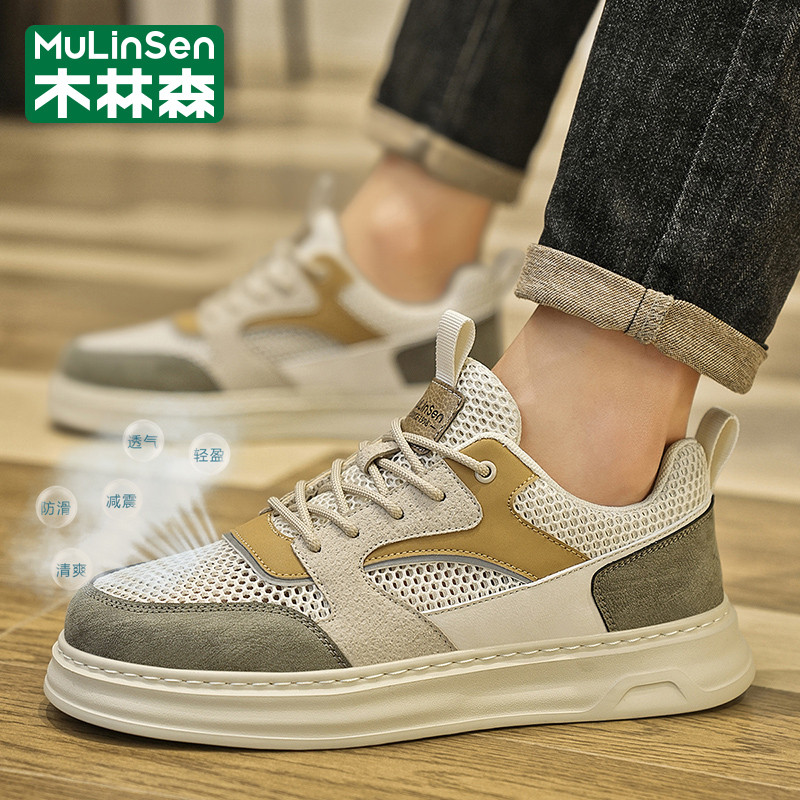 木林森男鞋2025年新款夏季网眼薄款镂空透气板鞋运动休闲工作潮鞋