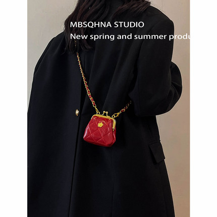 MBSQHNA小众设计迷你口红包包女2024新款洋气菱格链条夹口斜挎包