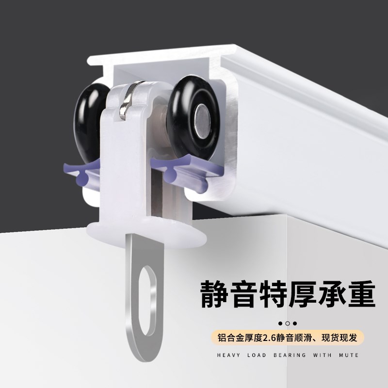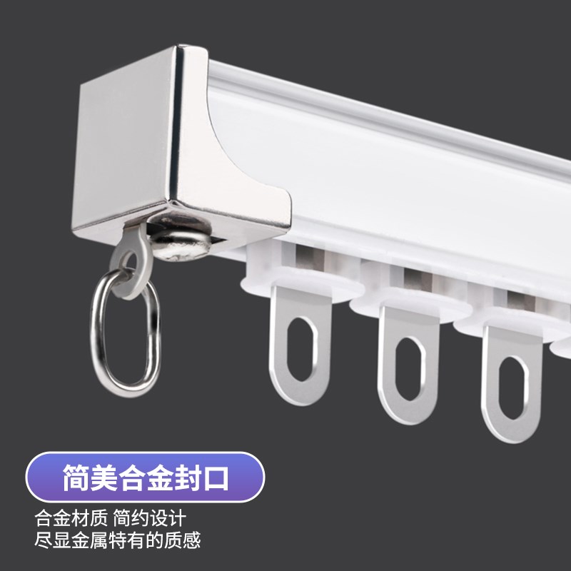 特厚铝合金窗帘轨道静音r滑轨顶装侧装单轨双轨配件交叉挂钩式滑