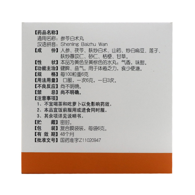 北京同仁堂 参苓白术丸6g*18袋 健脾祛湿调理脾胃参苓白术散