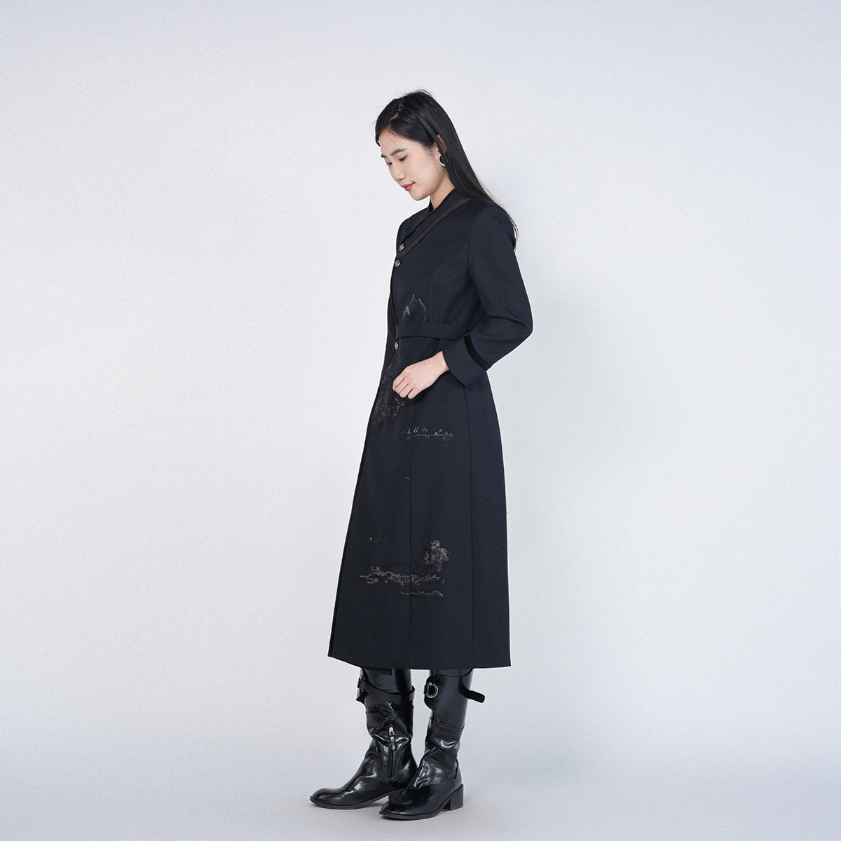 浒城古娘春季新款女装优雅气质中长款收腰新中式国风连衣裙女春秋