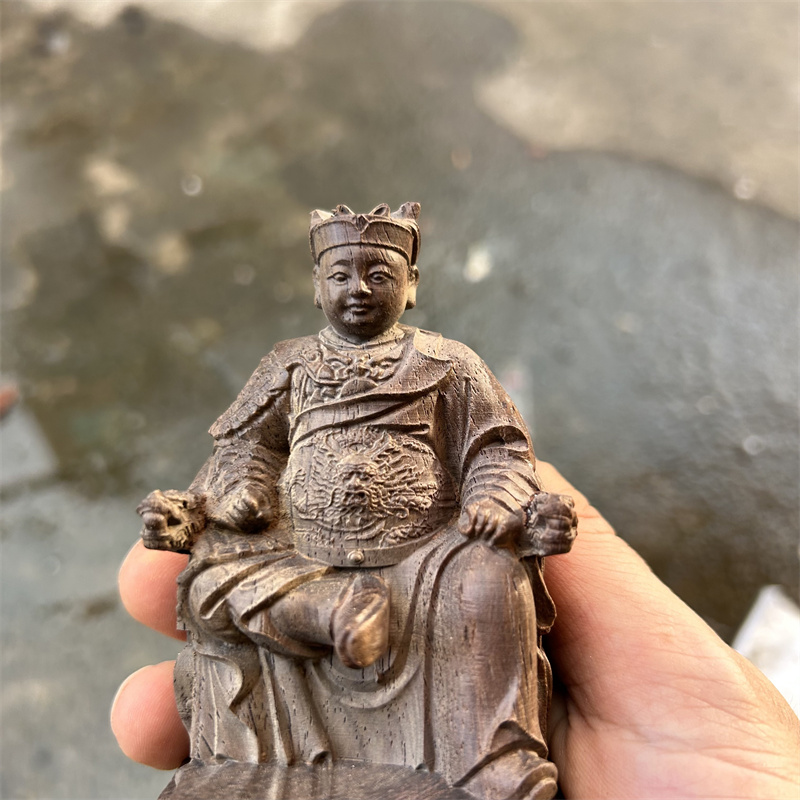 越南沉香木雕广泽尊王手工雕刻神像中式桌面供奉工艺品郭圣王摆件