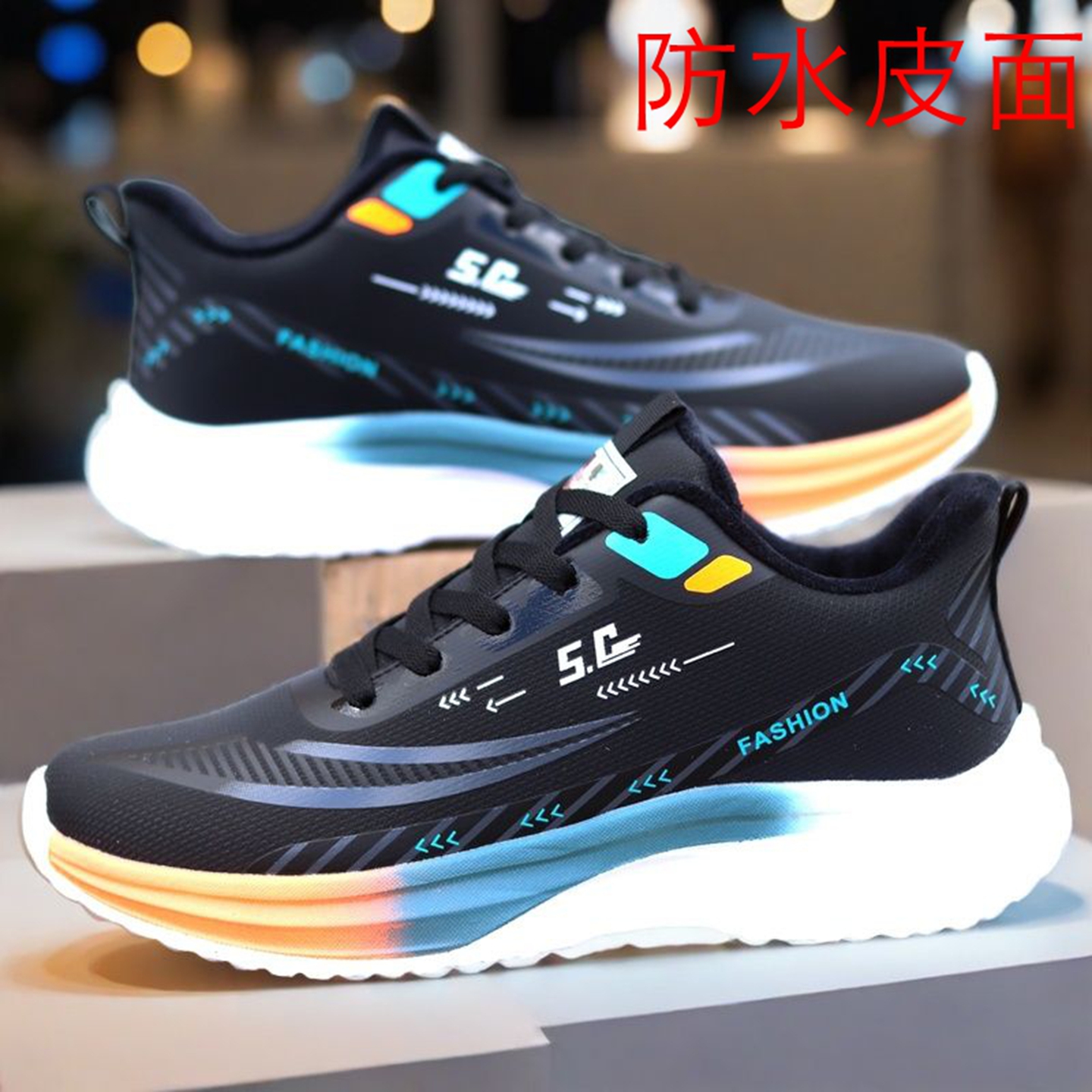 跑步鞋男鞋秋冬季超轻运动鞋防水皮面软底耐磨学生大码潮流休闲鞋