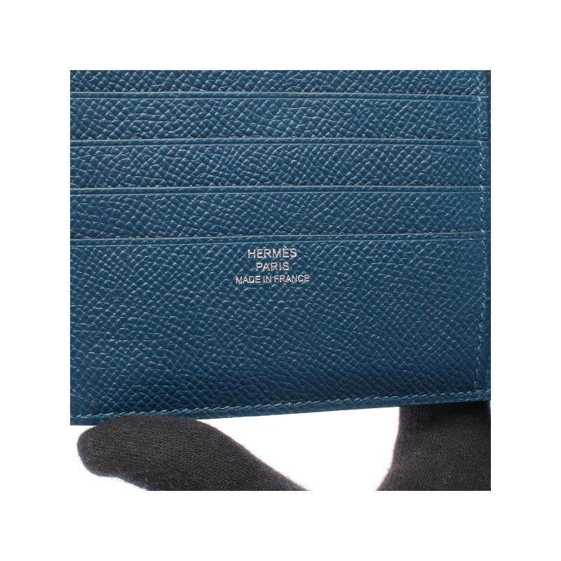 中古Hermes爱马仕男B级9新Bi-fold wallet双折钱包牛皮短钱包蓝色