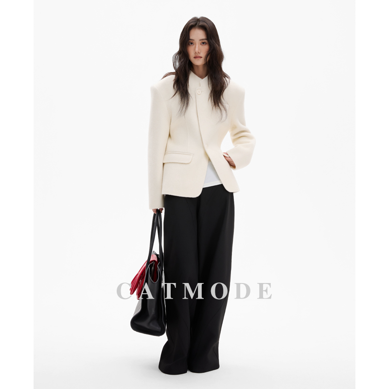 LIONCAT/冬季新款极简风高级感双面呢羊毛外套女短款气质百搭显瘦