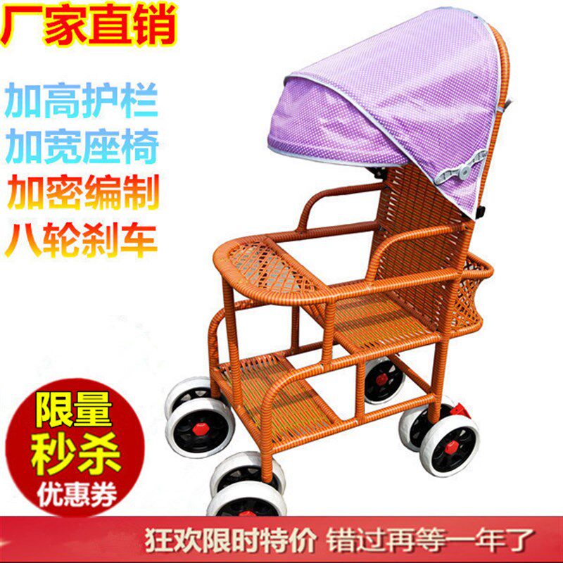 婴儿车椅儿童宝宝童车夏季仿藤推车轻便万向轮仿竹藤音乐藤椅藤编