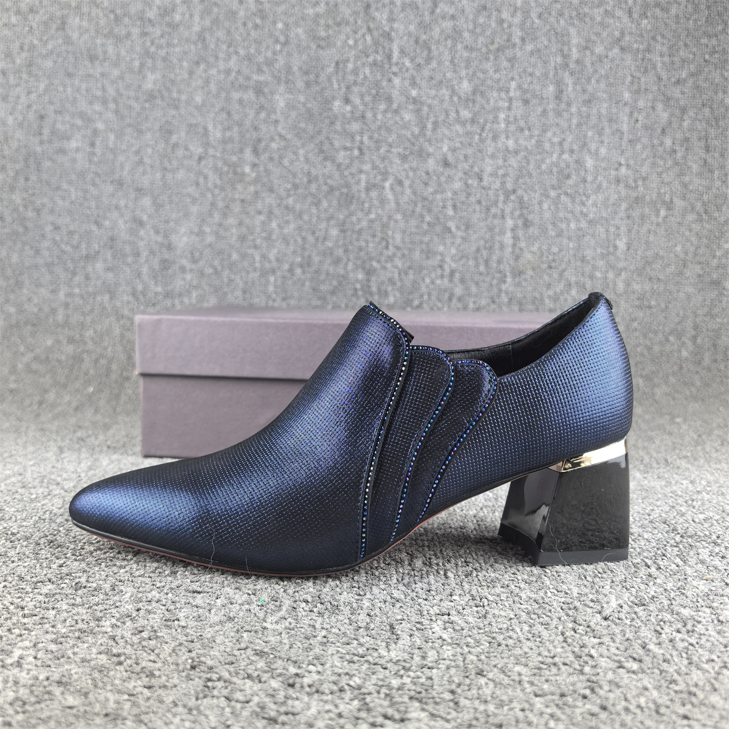 断码处理压纹羊皮民族风深口单鞋女春秋款尖头中跟真皮女鞋侧拉链