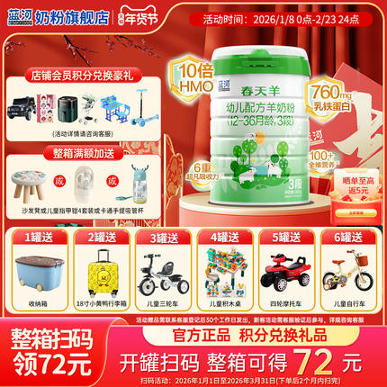 6罐扫码得72 蓝河绵羊奶官方旗舰店春天羊奶粉3段幼儿800g12-36月