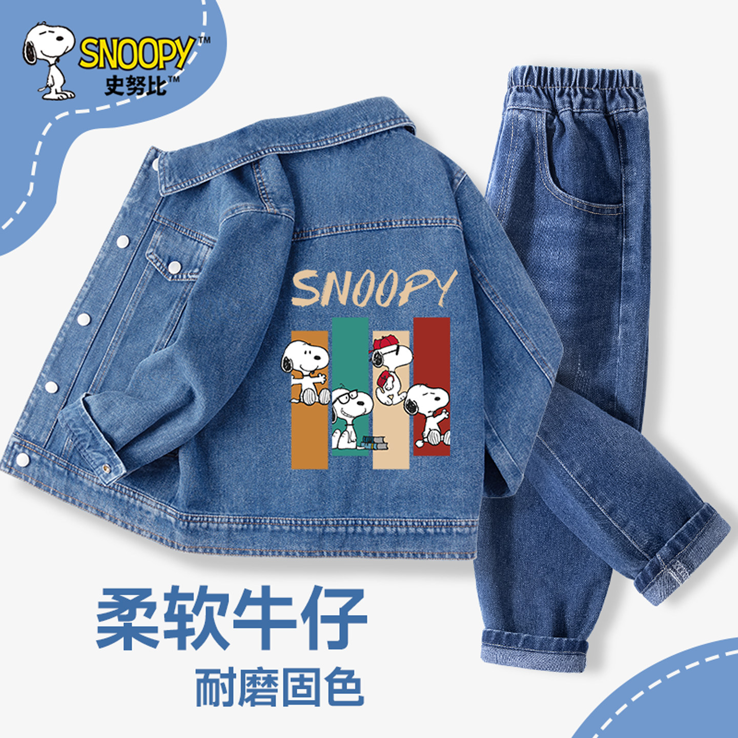 史努比男童秋季套装2025新款男大童软牛仔夹克儿童宽松休闲两件套