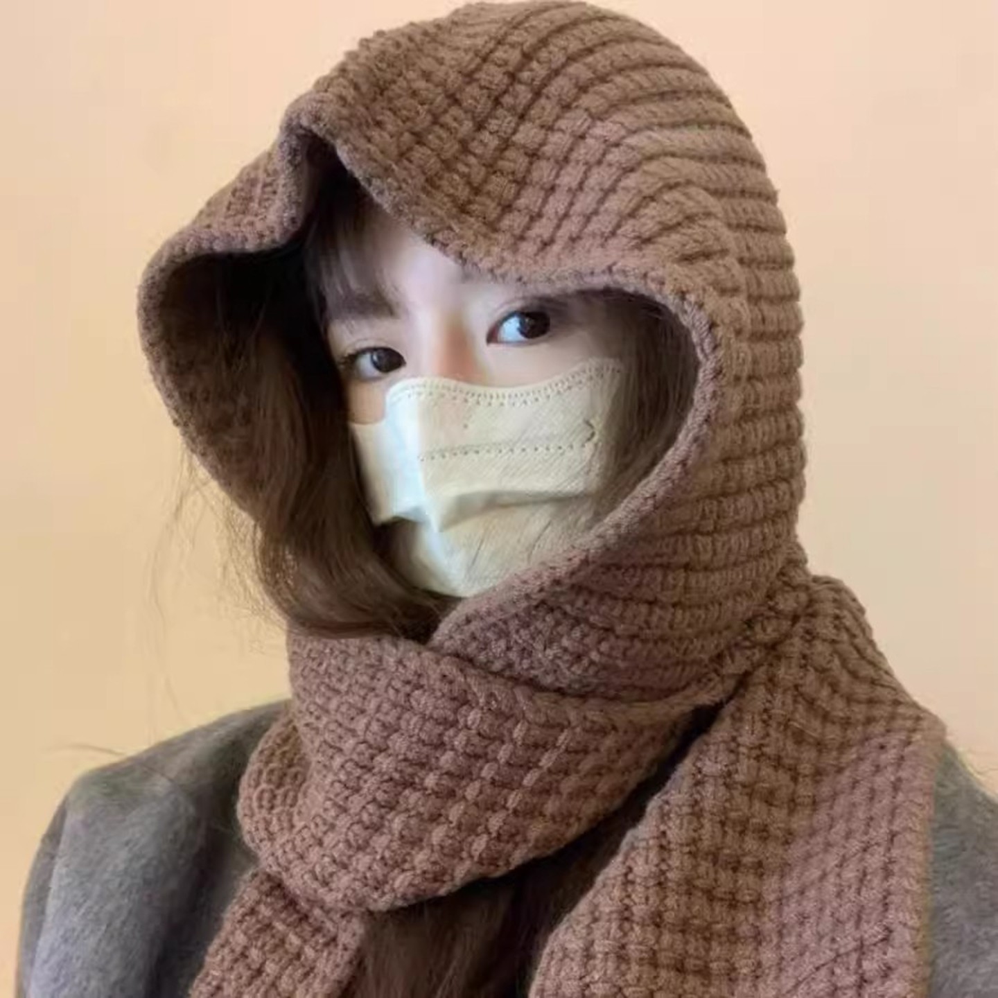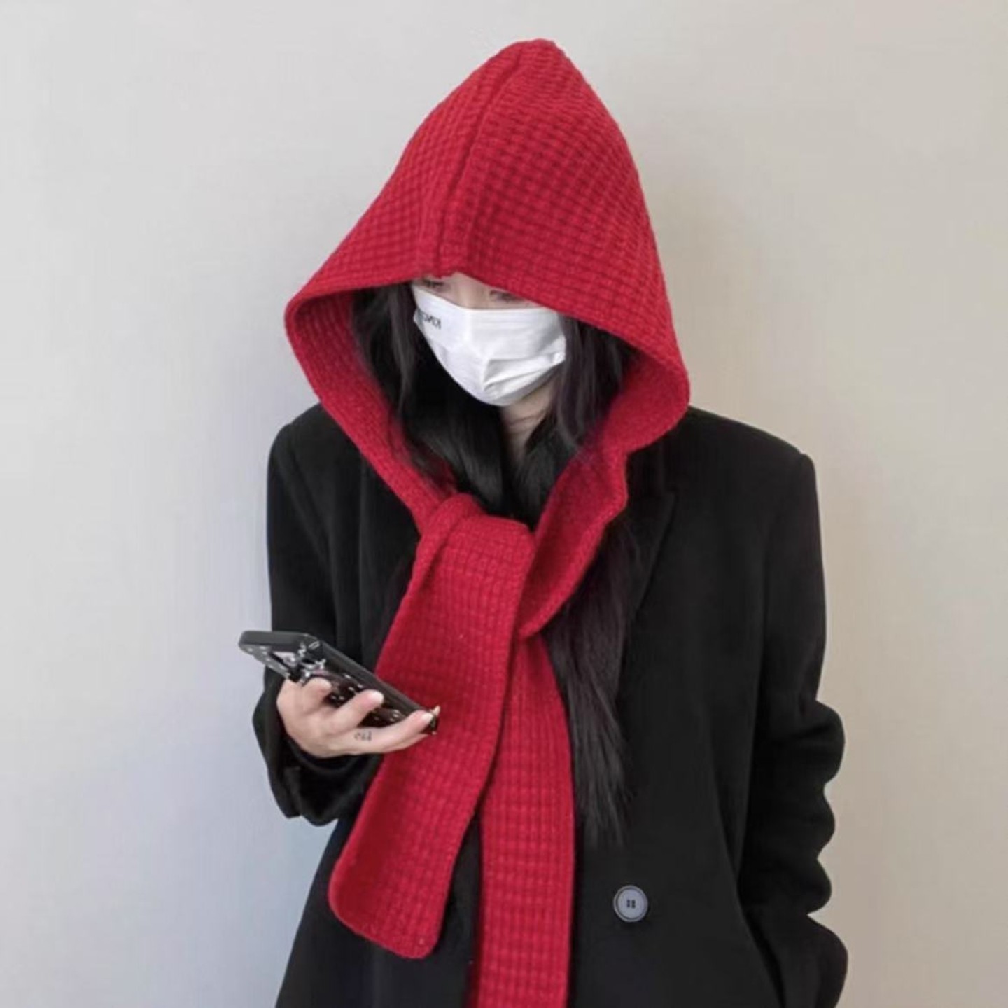 秋冬连帽围巾帽子女韩版披肩一体保暖外搭高级感防风防寒护颈围脖