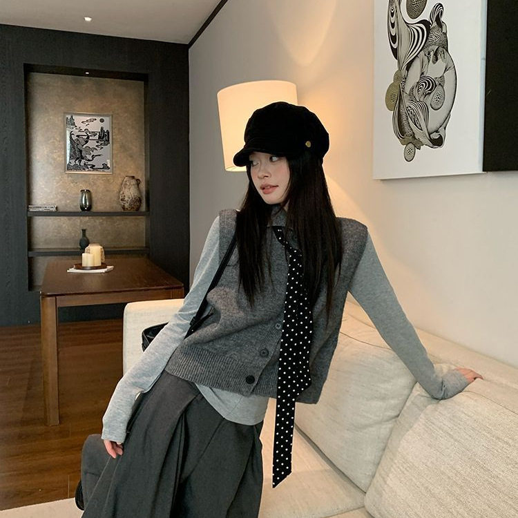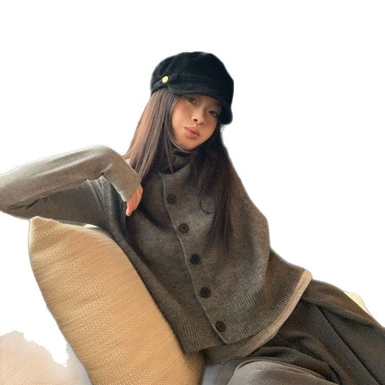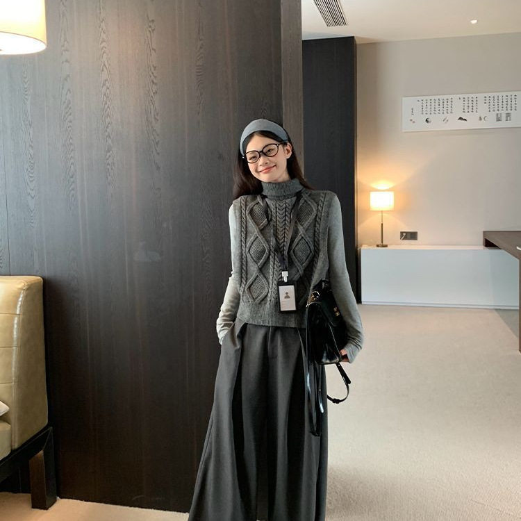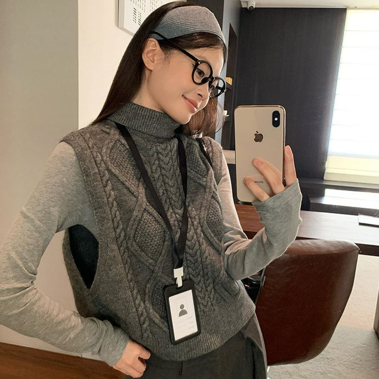 网红同款灰色高领针织马甲女冬季高智感复古无袖毛衣背心叠穿上衣