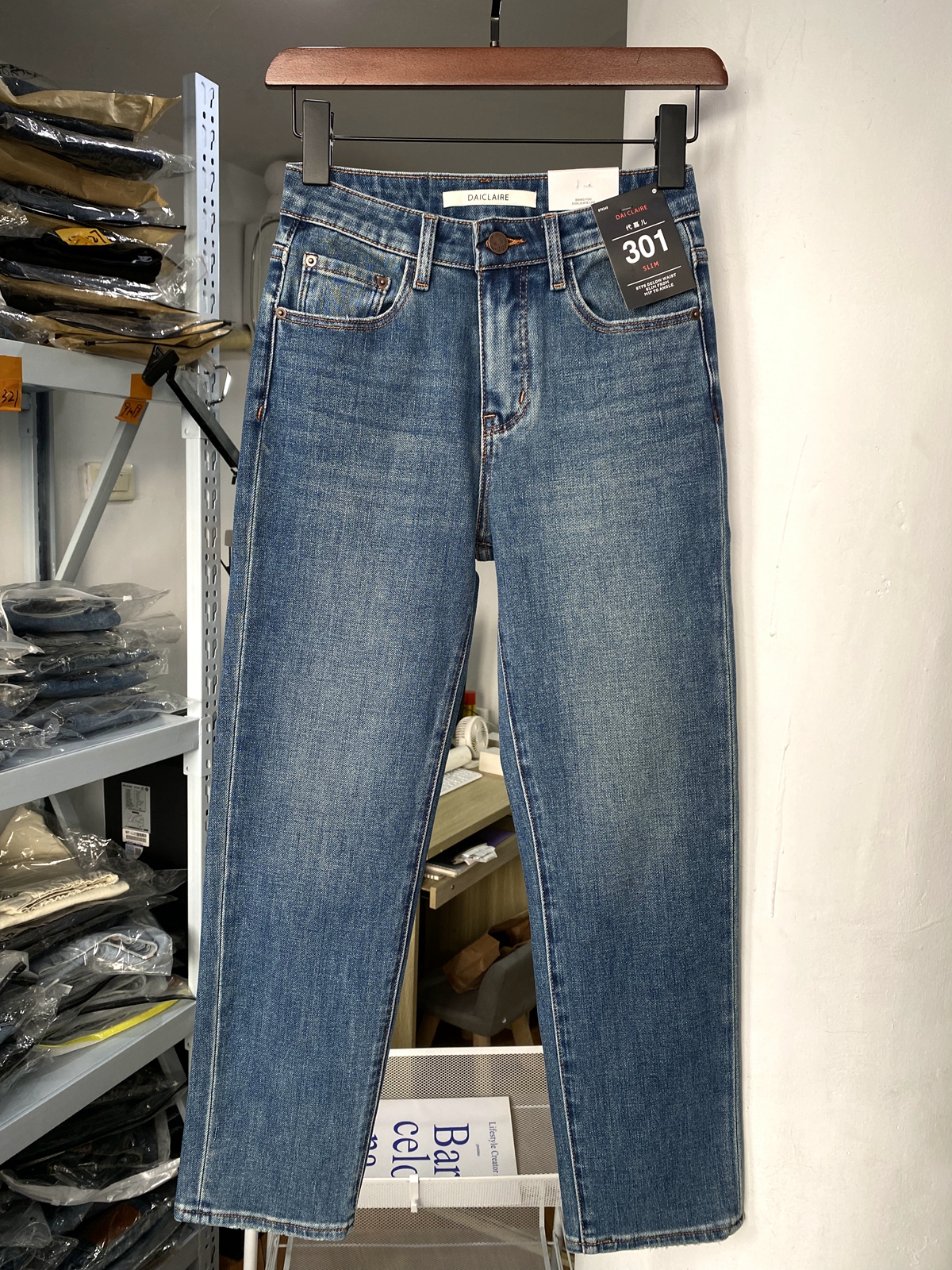 代嘉儿310深蓝色烟管牛仔裤女2025秋季新款高腰九分显瘦直筒裤潮