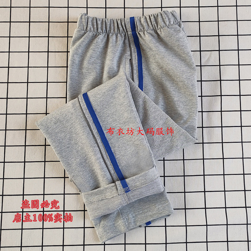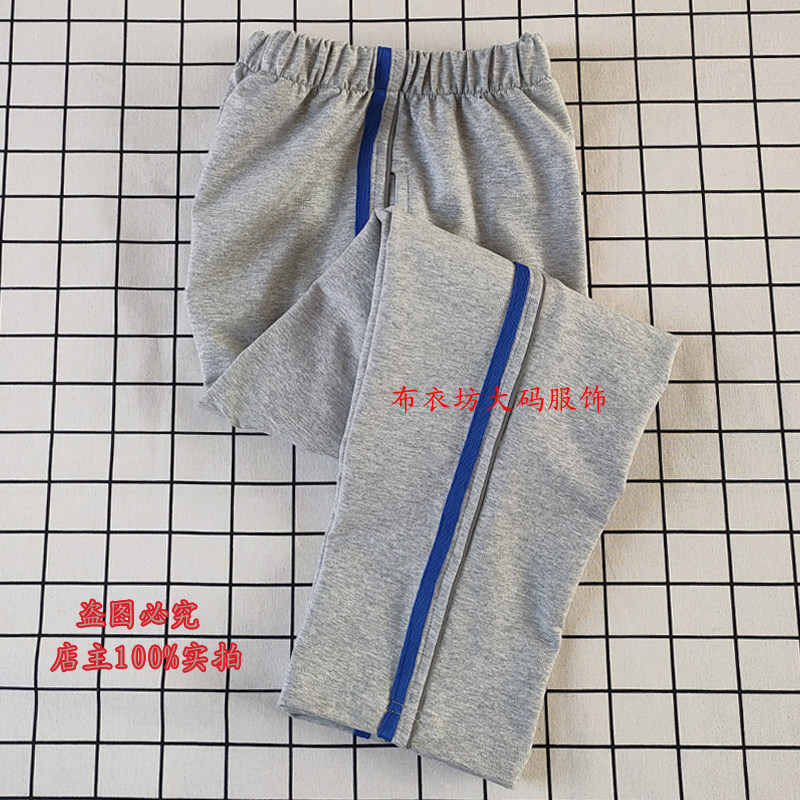 秋冬款高中小学生校服裤子浅灰色反光条一道蓝杠纯棉休闲运动裤