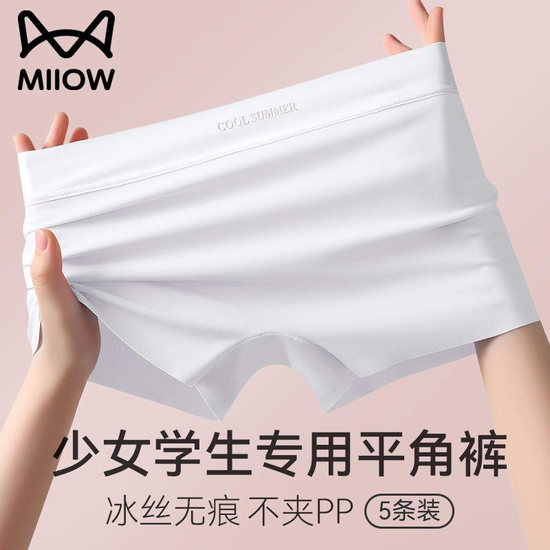 猫人平角内裤女大童纯棉抗菌裆初高中学生12周岁发育期少女四角裤