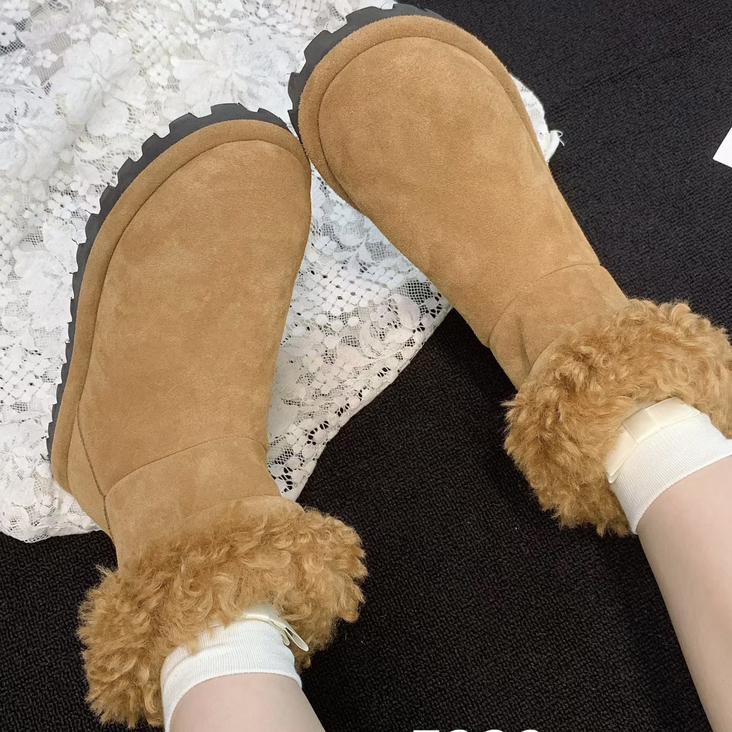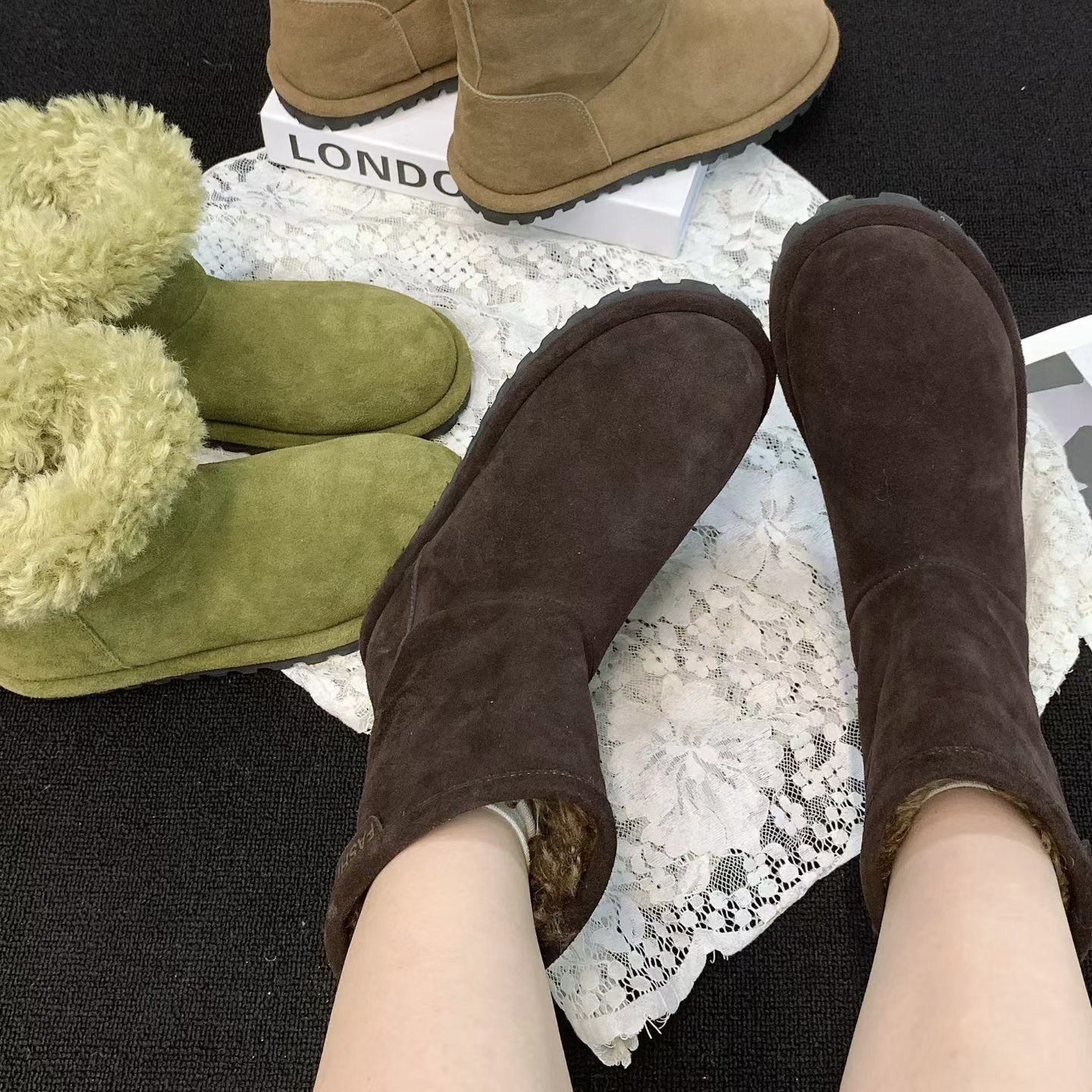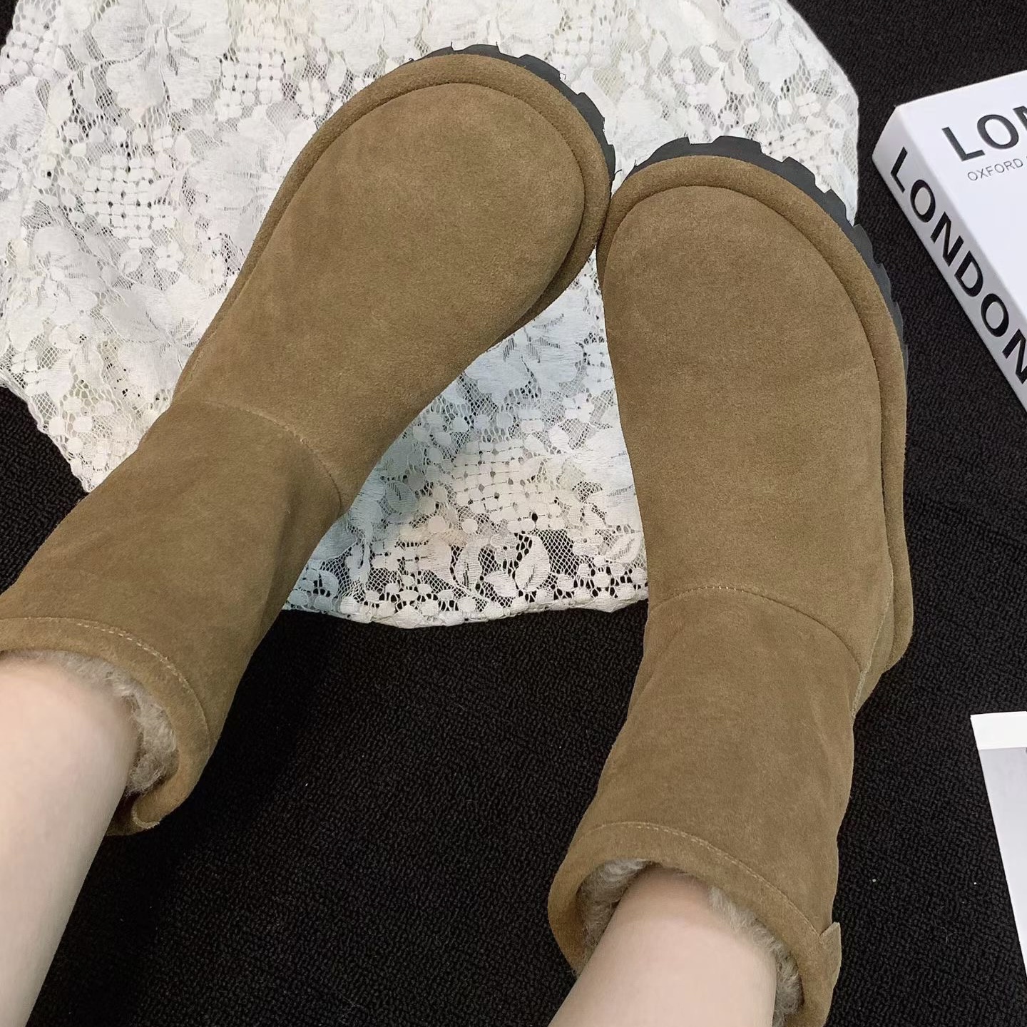 两穿真皮冬季毛毛保暖加绒棉靴百搭复古厚底女靴子短靴防寒雪地靴
