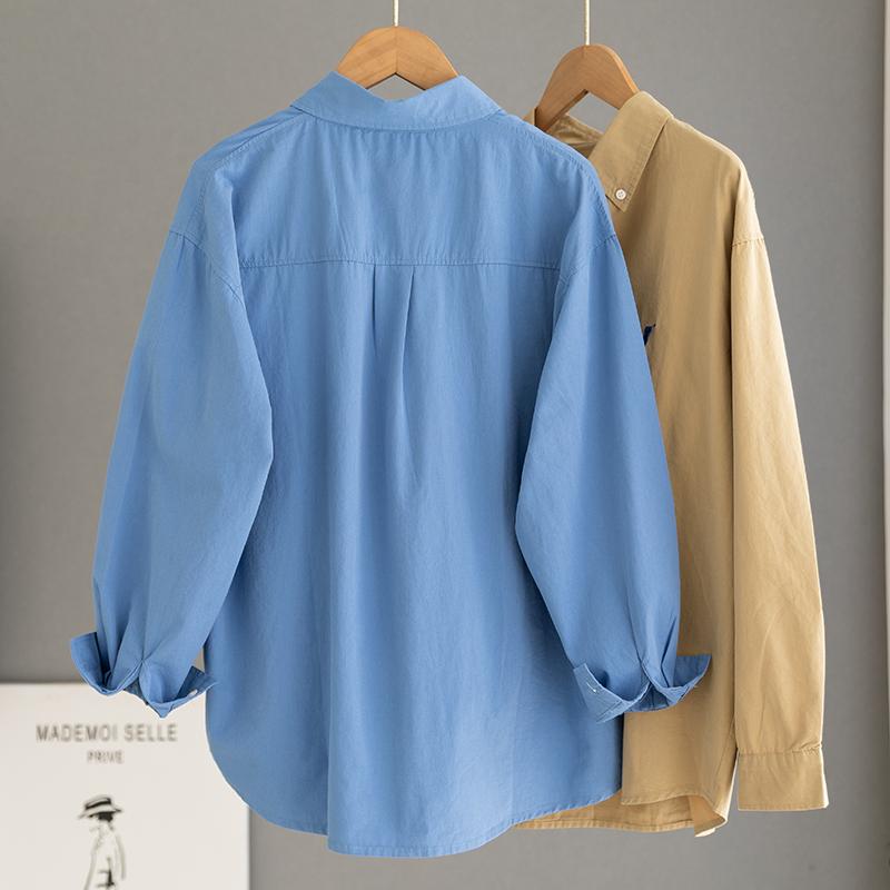 出口外套高级感纯棉蓝色衬衫女日系工装风刺绣衬衣打底衫叠穿上衣