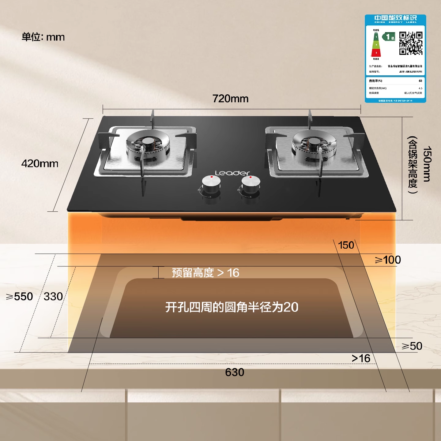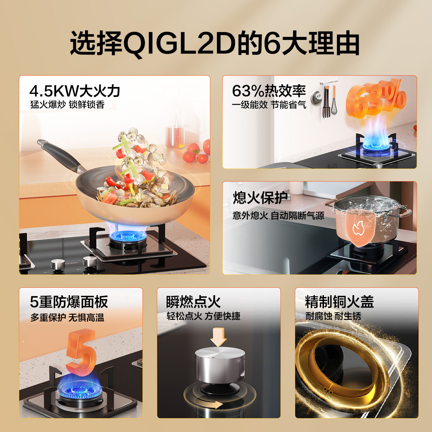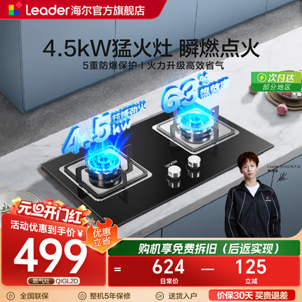 海尔出品统帅4.5Kw天然气双灶家用灶台嵌入式灶具以旧换新QIGL2D