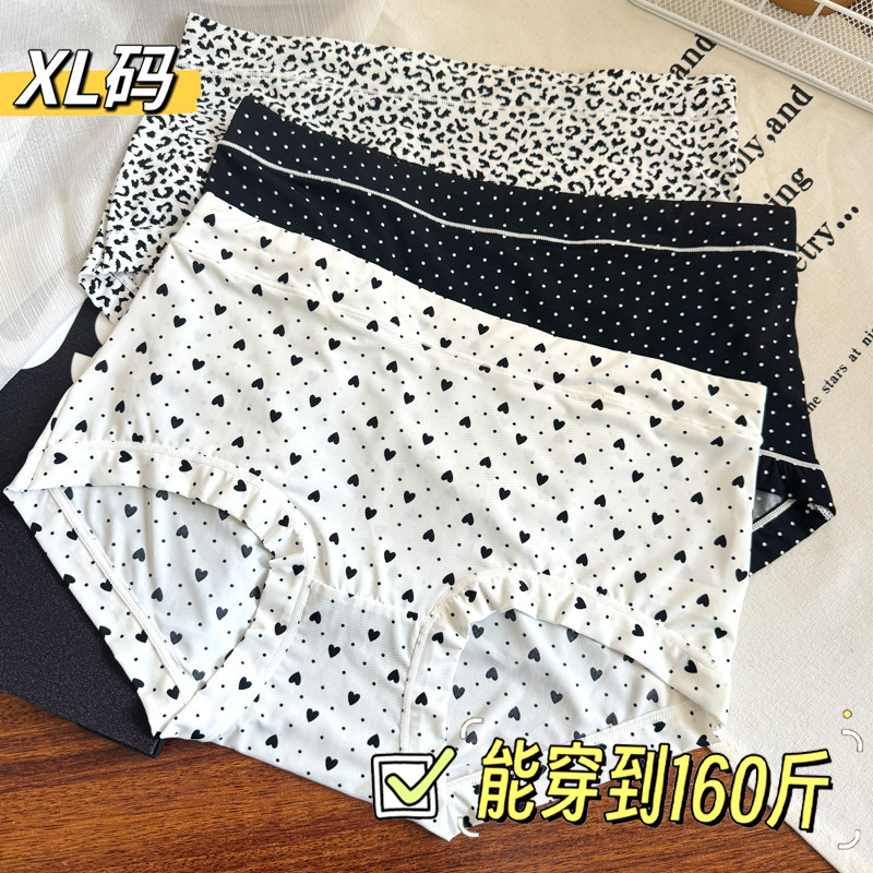 冰丝内裤女大码胖mm中腰牛奶丝滑溜溜黑色格子豹纹学生透气三角裤